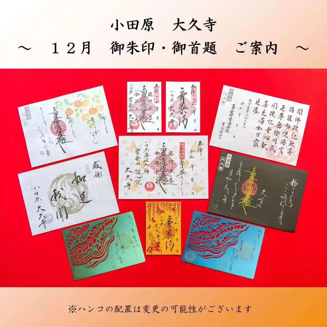 ※⑨はこれまで大久寺の御朱印でご縁を頂いた方であれば郵送対応にて承ります。