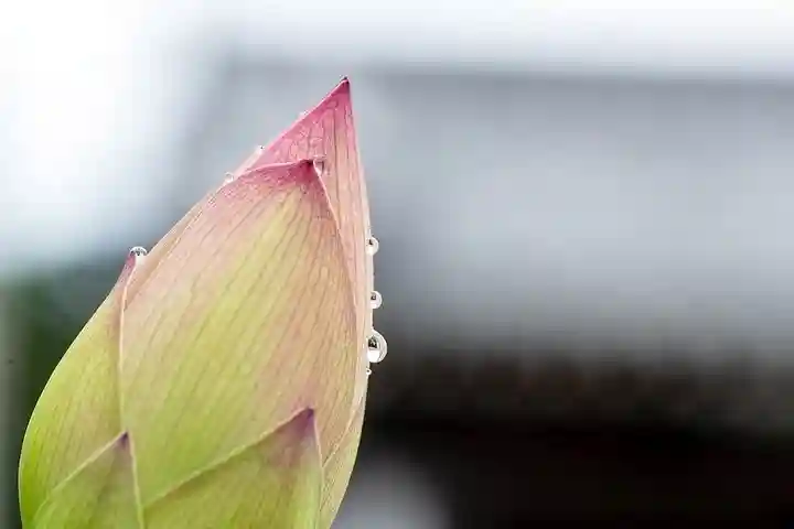 蓮の蕾がかなり膨らんできました。雨粒が綺麗です。