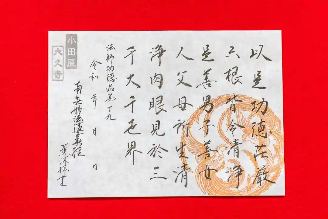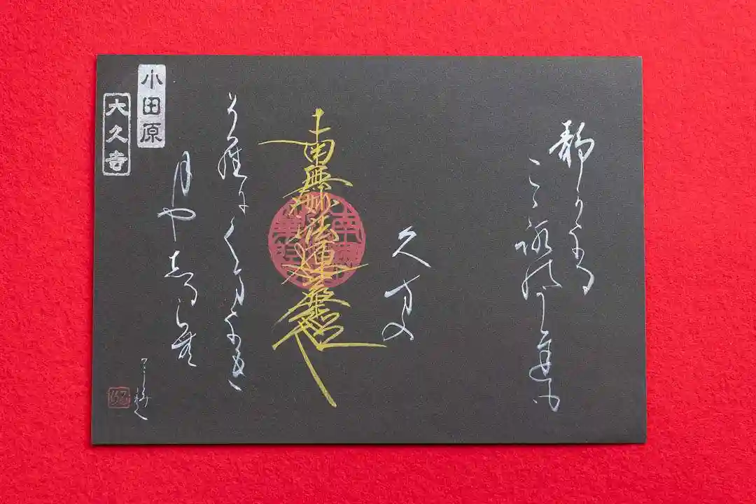 一度ご参拝いただき御朱印の書き入れを承った方、または大久寺オリジナル御朱印帳をお求め頂いた方は、以降の直書き往復郵送対応を承ります。詳細はお気軽にお尋ねください。切り絵御朱印のみ、オンライン授与所(ベイス)にて郵送頒布を行っております。
