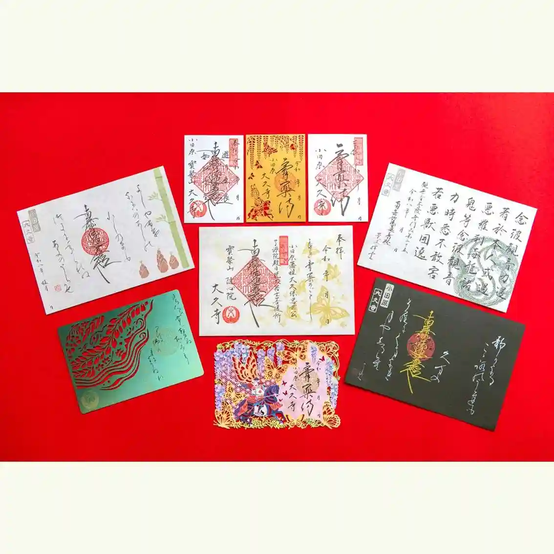 一度ご参拝いただき御朱印の書き入れを承った方、または大久寺オリジナル御朱印帳をお求め頂いた方は、以降の直書き往復郵送対応を承ります。詳細はお気軽にお尋ねください。切り絵御朱印のみ、オンライン授与所(ベイス)にて郵送頒布を行っております。
