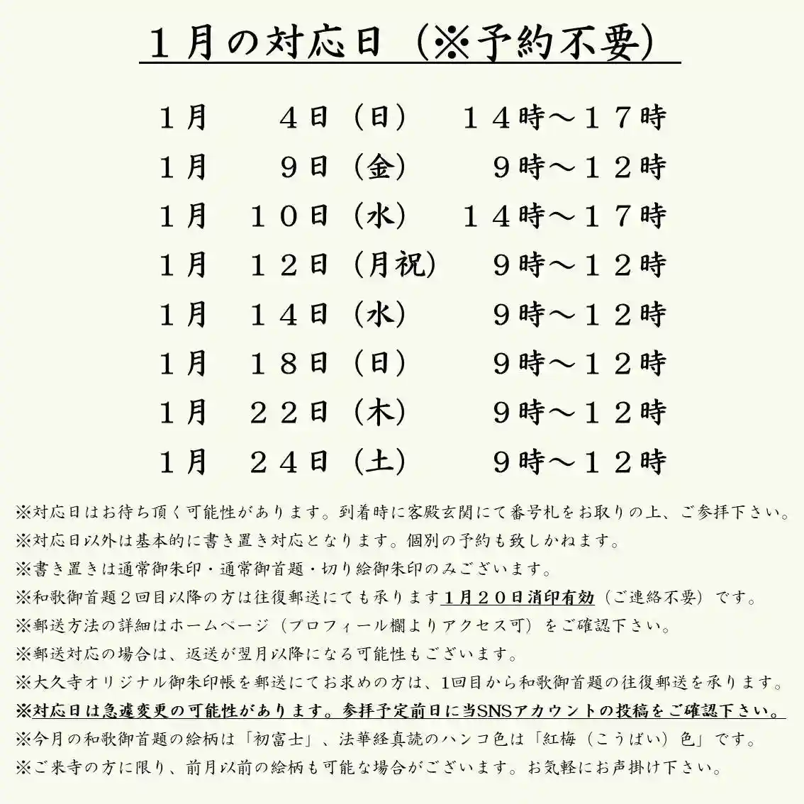 【1月の御朱印・御首題】