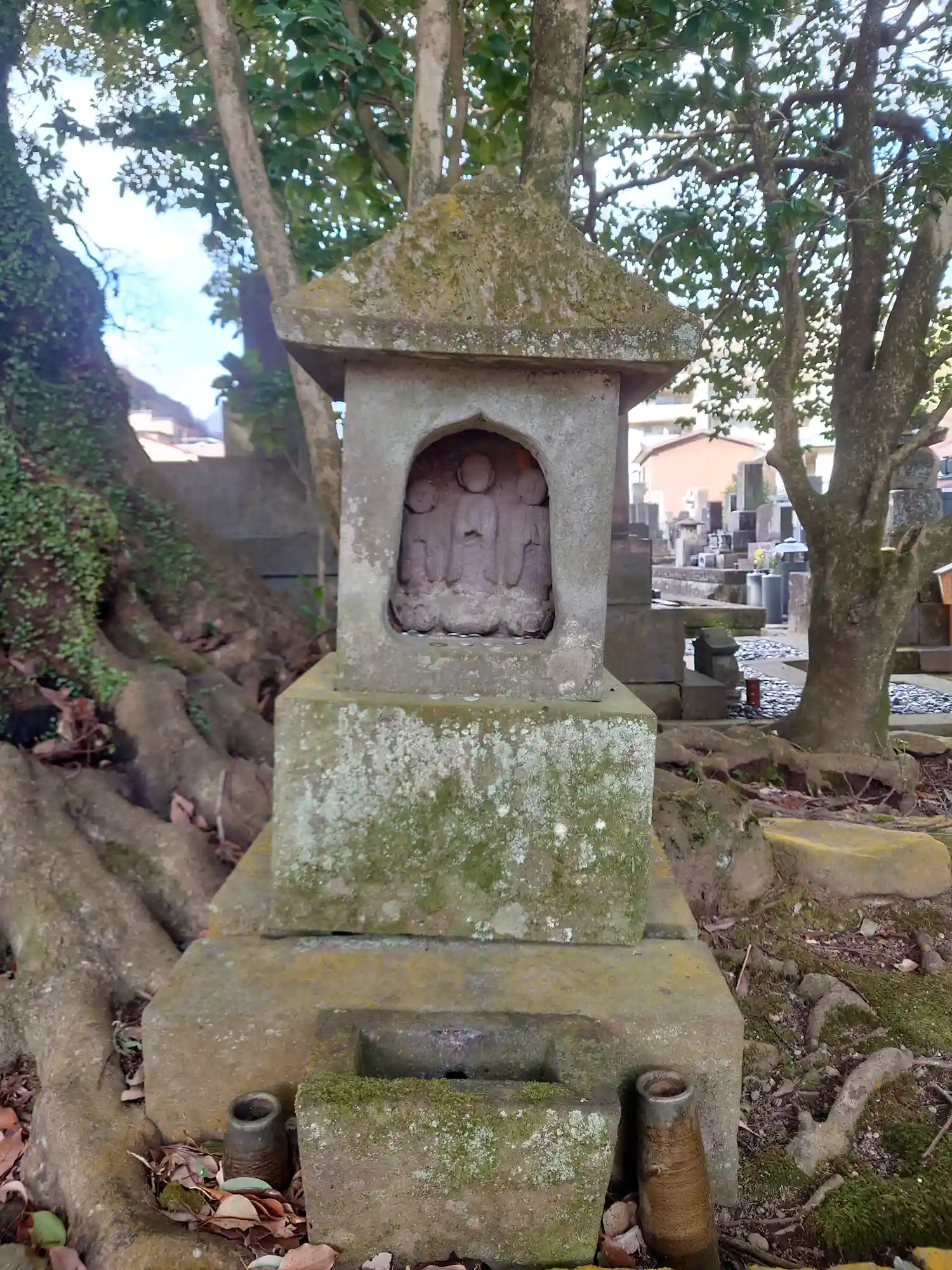 『今大路道三の墓』 安土桃山時代、江戸時代の医師。 父より医術を学ぶ。幼少より徳川秀忠に小姓として仕え、16歳の時に後陽成天皇に拝して橘姓と今大路の家号を賜る。その後剃髪した。 寛永3年(1626)秀忠が上洛した際にともに上洛したが、崇源院(江姫)が重態に陥ったため治療を命じられ急ぎ江戸に向うも、道三自身も帰東の途上に発病し、箱根宿で死去し早雲寺に葬られた。