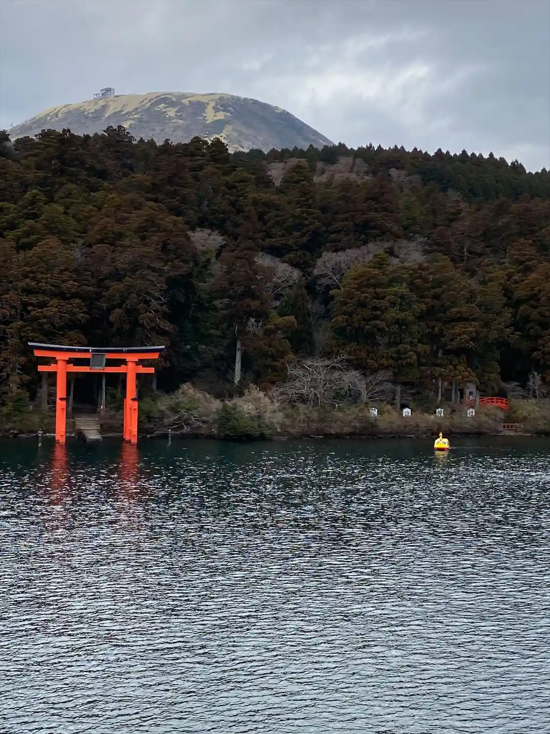 海賊船から湖にある鳥居を撮りましたよ。