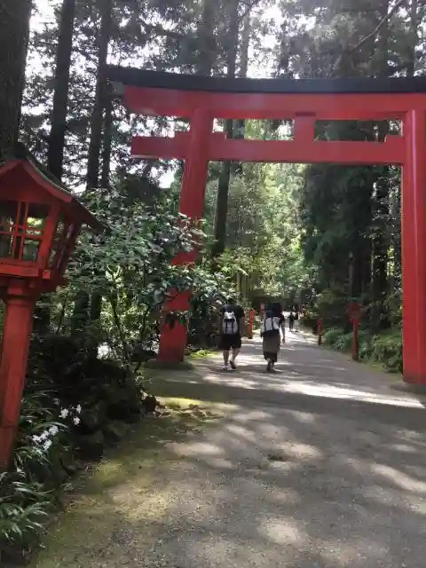 立派な鳥居が素敵な箱根神社。緑と朱のコントラストが本当に美しいです。