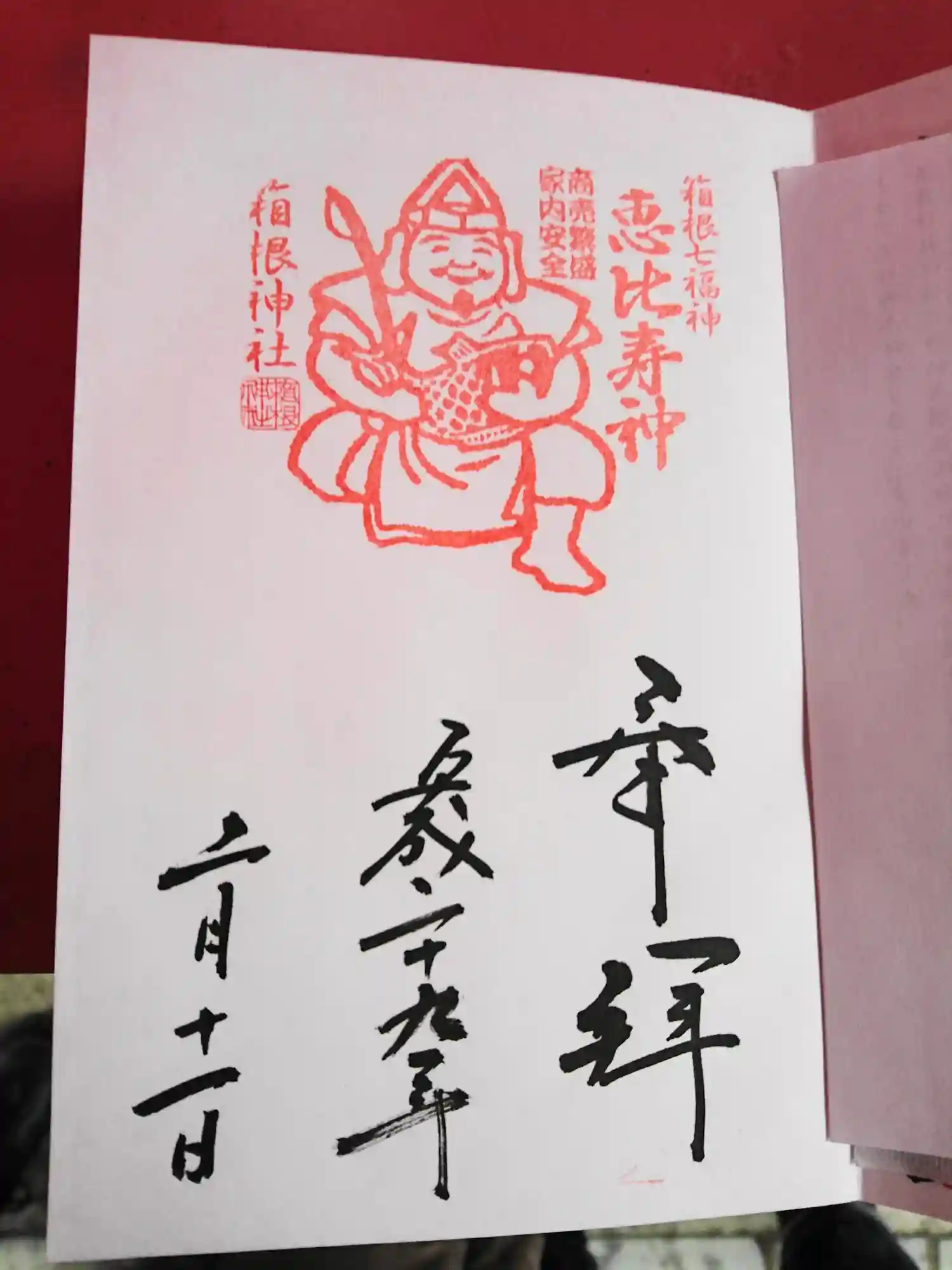 箱根神社を参拝し、箱根神社、恵比寿様の御朱印を頂きました。