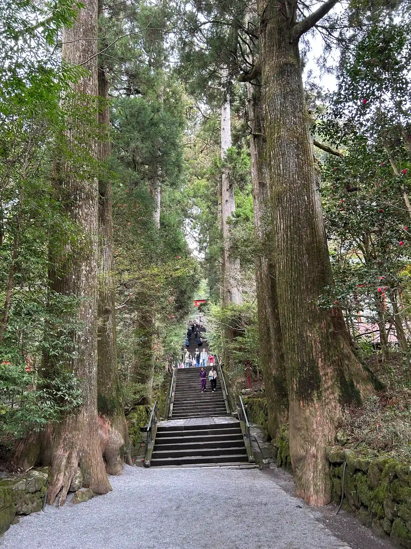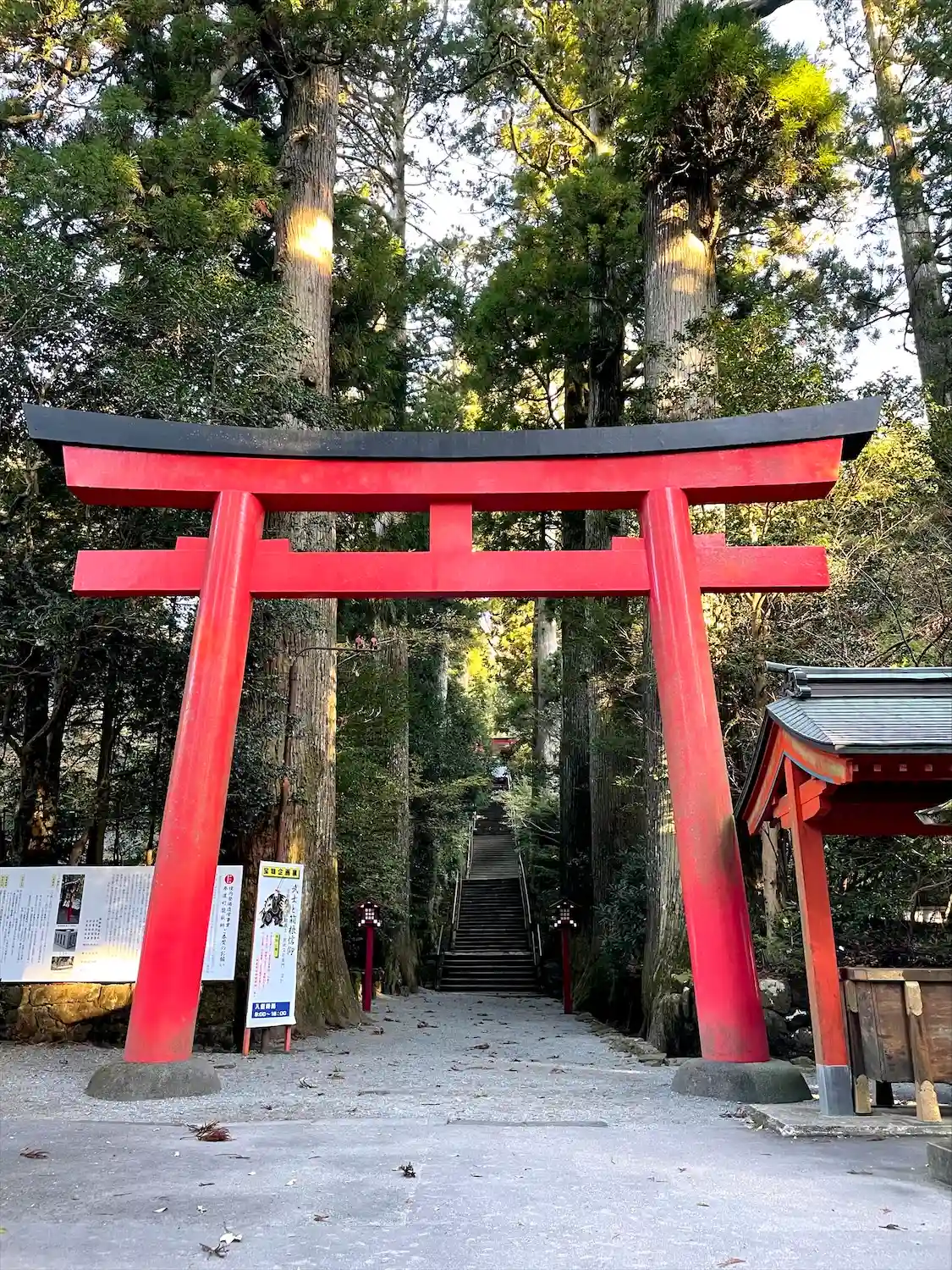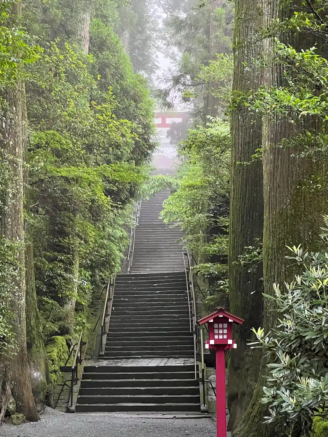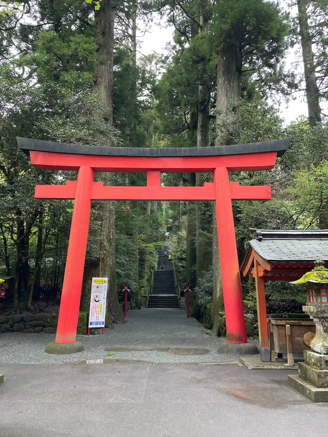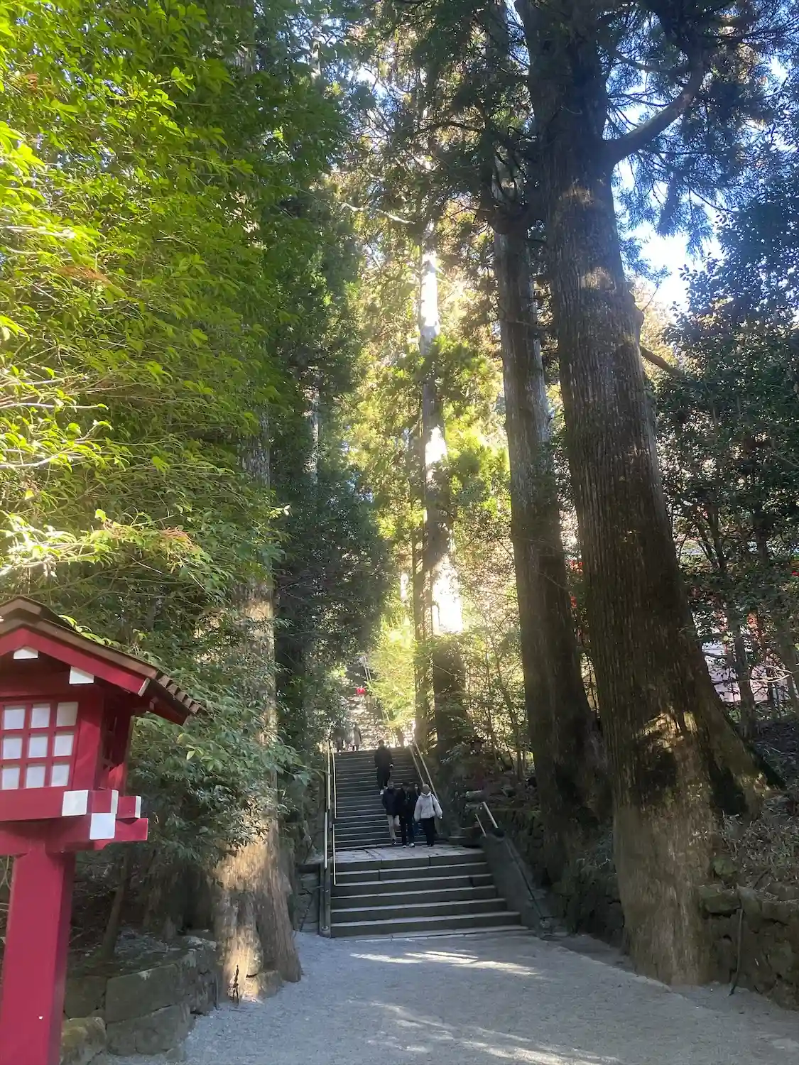 ひとり旅で箱根へ。芦ノ湖のそばにある箱根神社にお参りにいきました。杉並木の中の長い階段を登って神聖…
