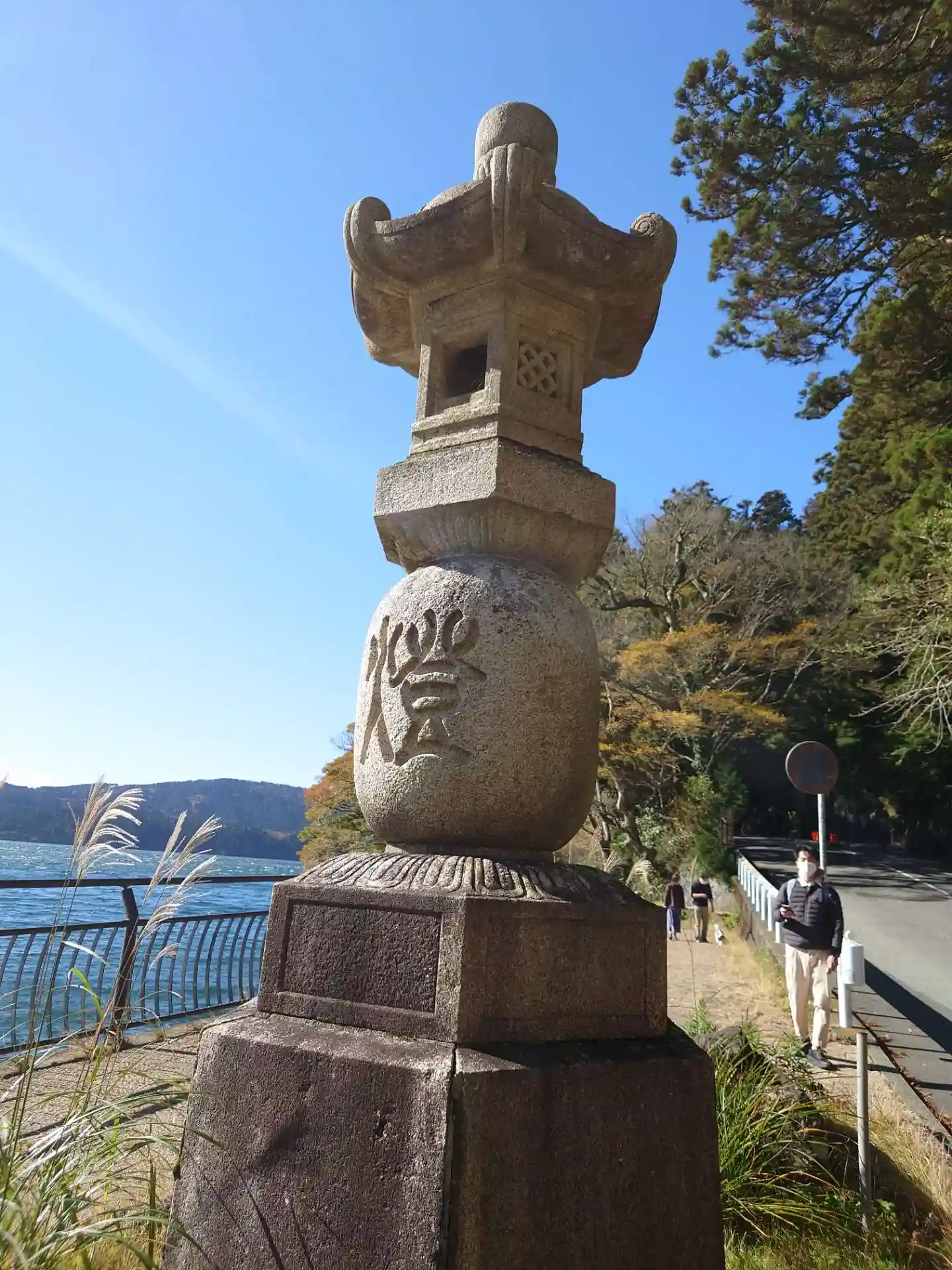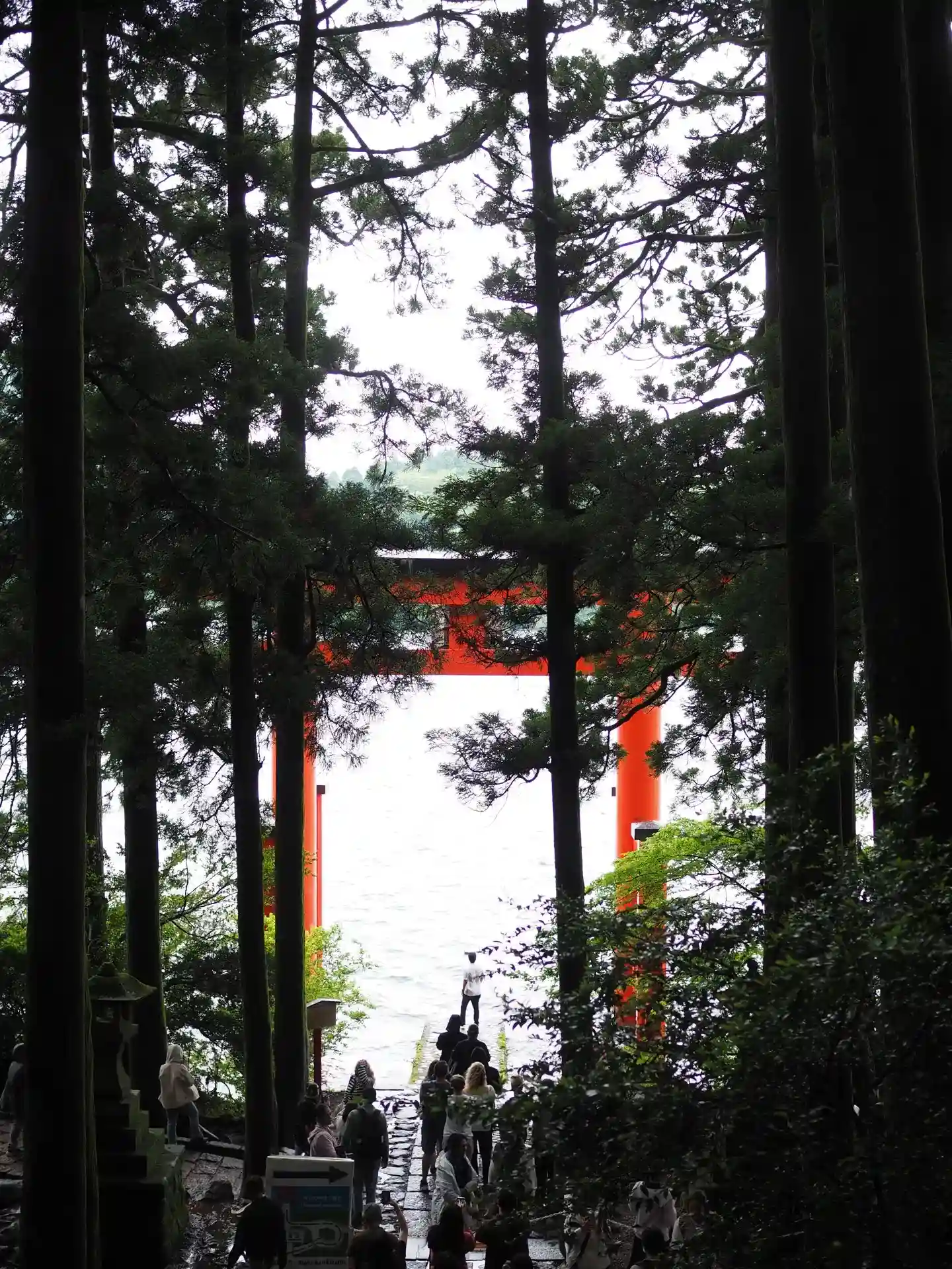 駐車場に車を停めて、まず平和の鳥居と芦ノ湖を撮りに湖畔に行きました。