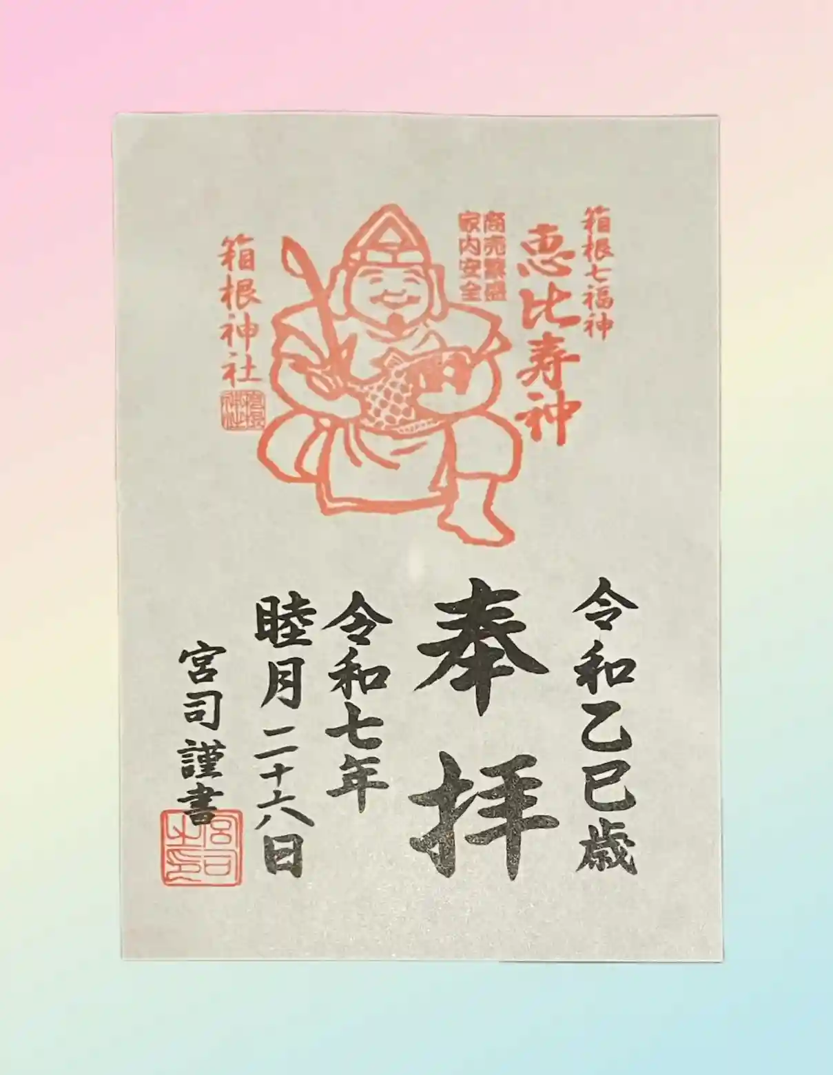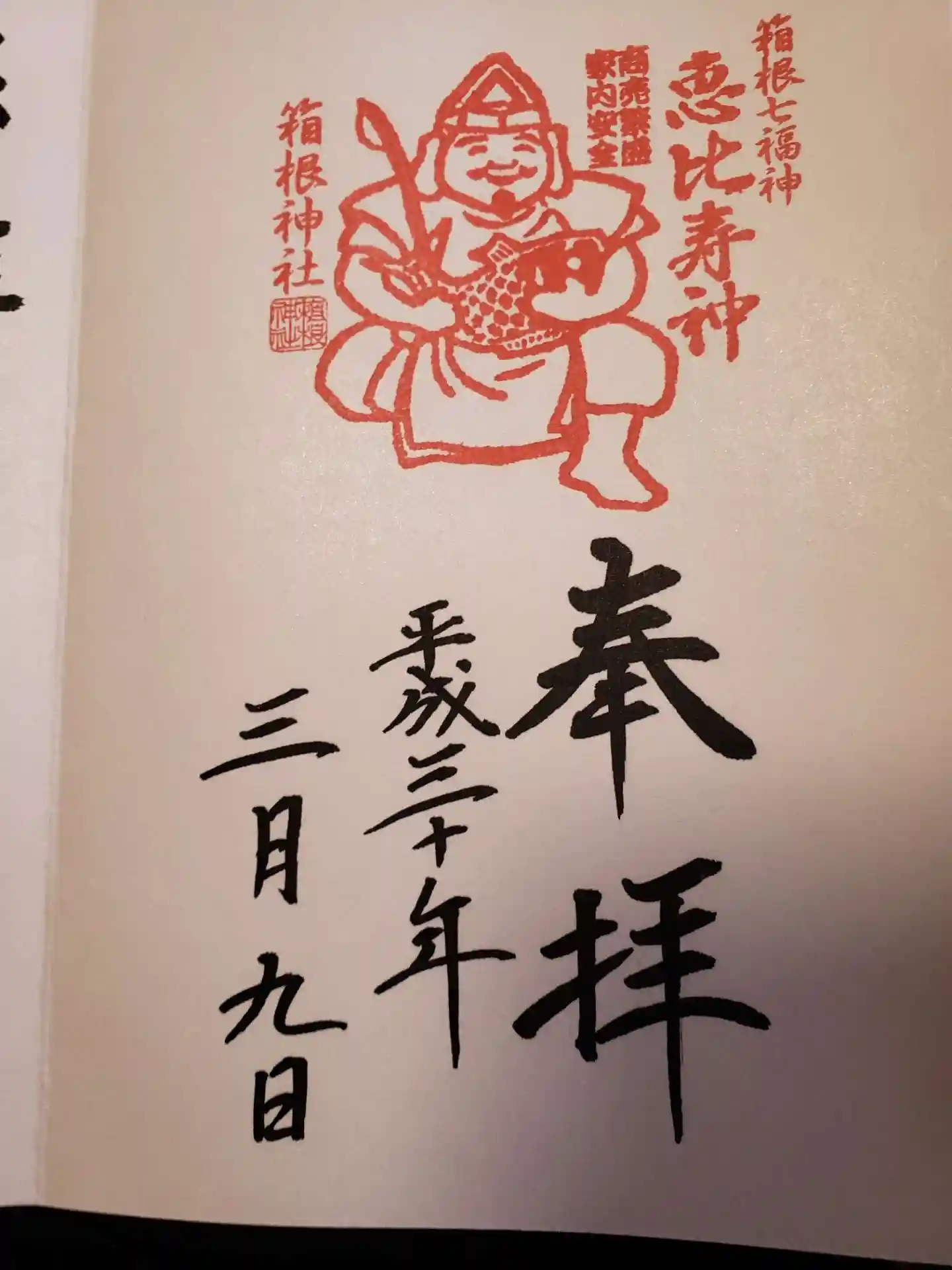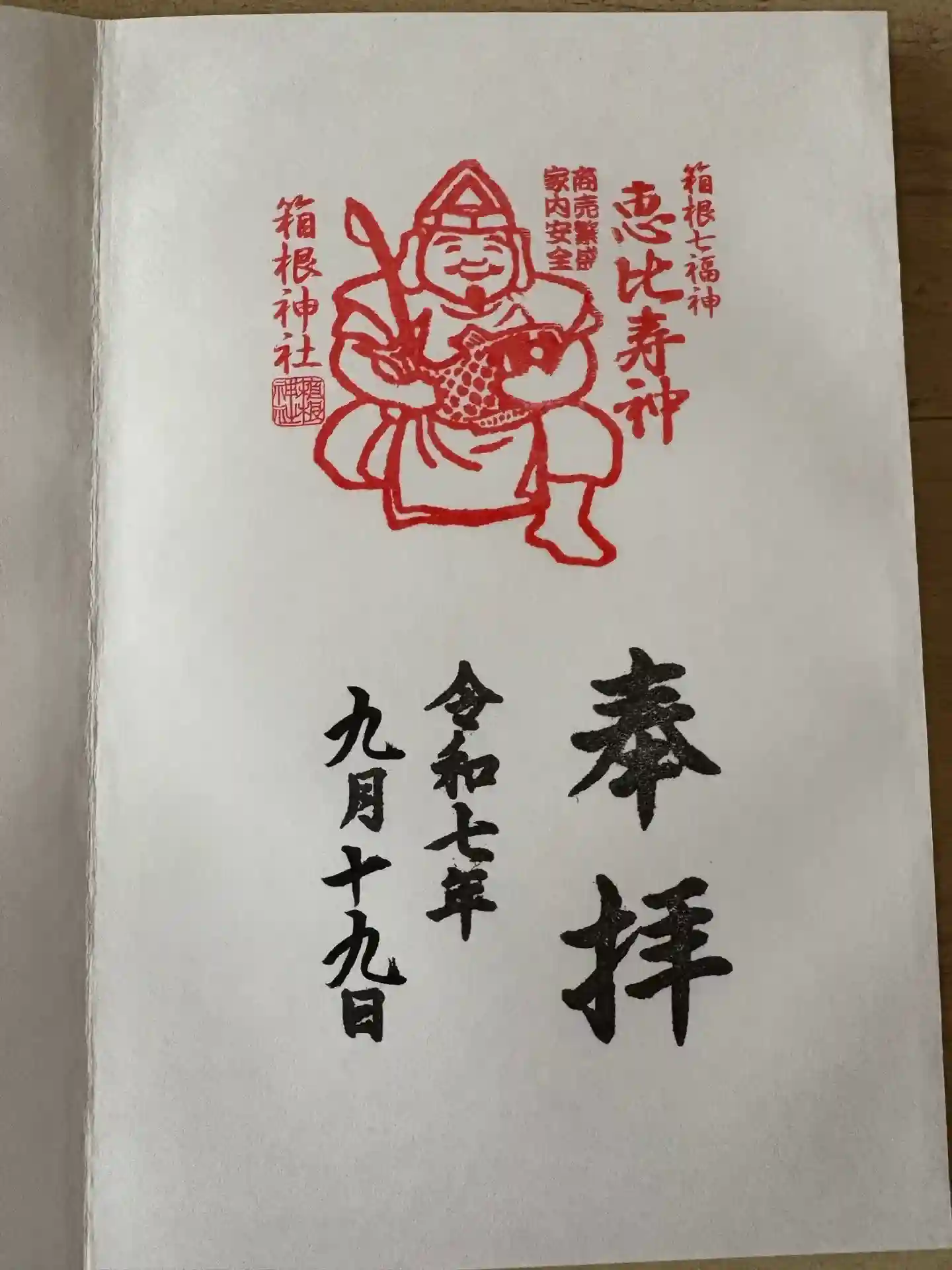 箱根神社を参拝し、箱根神社、恵比寿様の御朱印を頂きました。