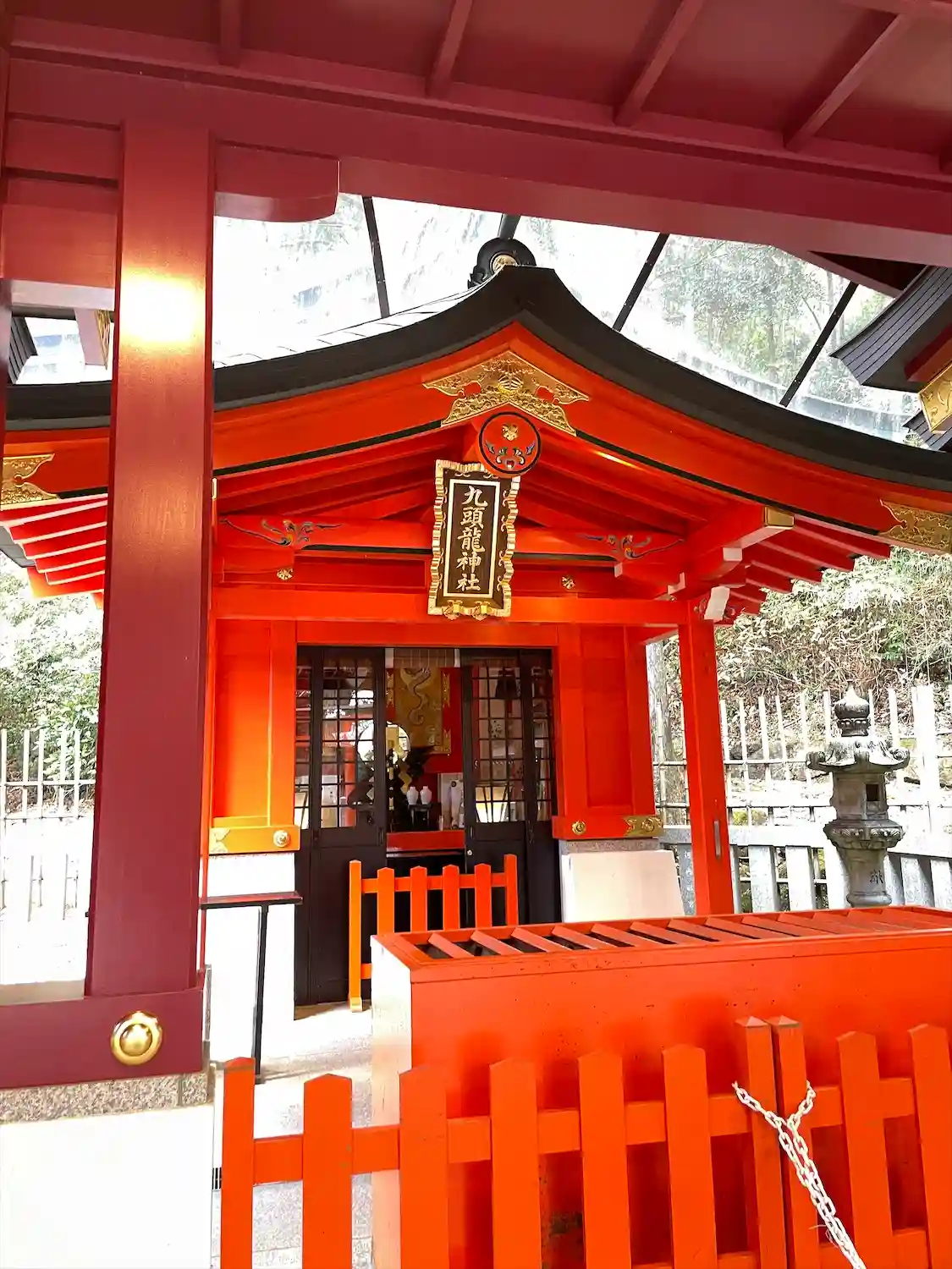 本殿は朱塗りの権現造りで、境内には九頭龍神社も祀られてました