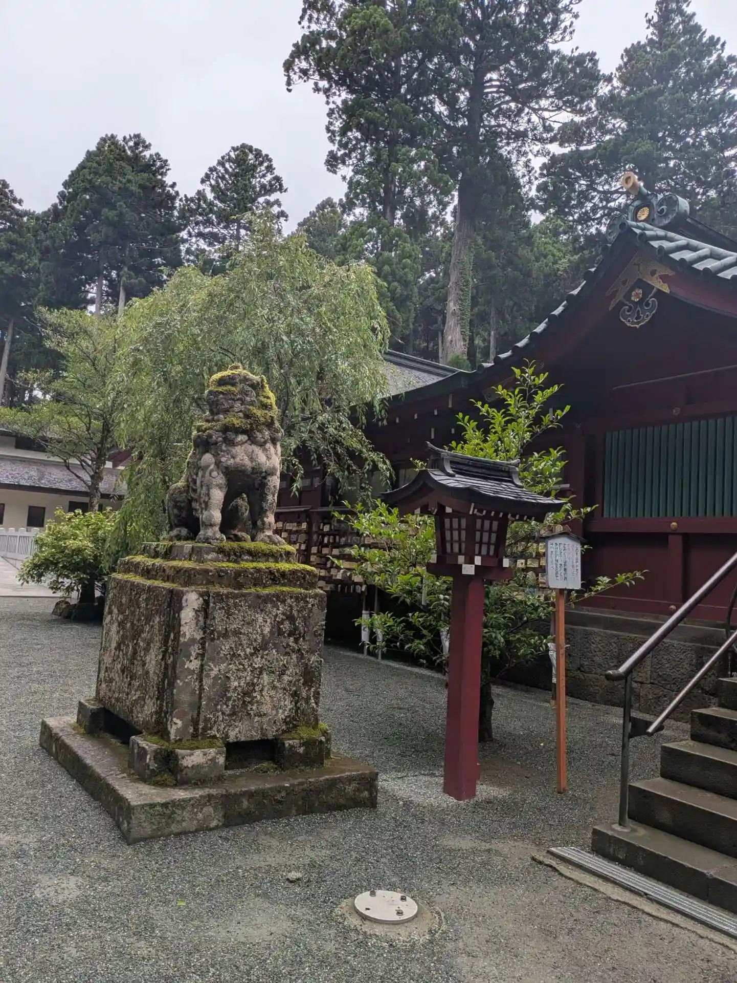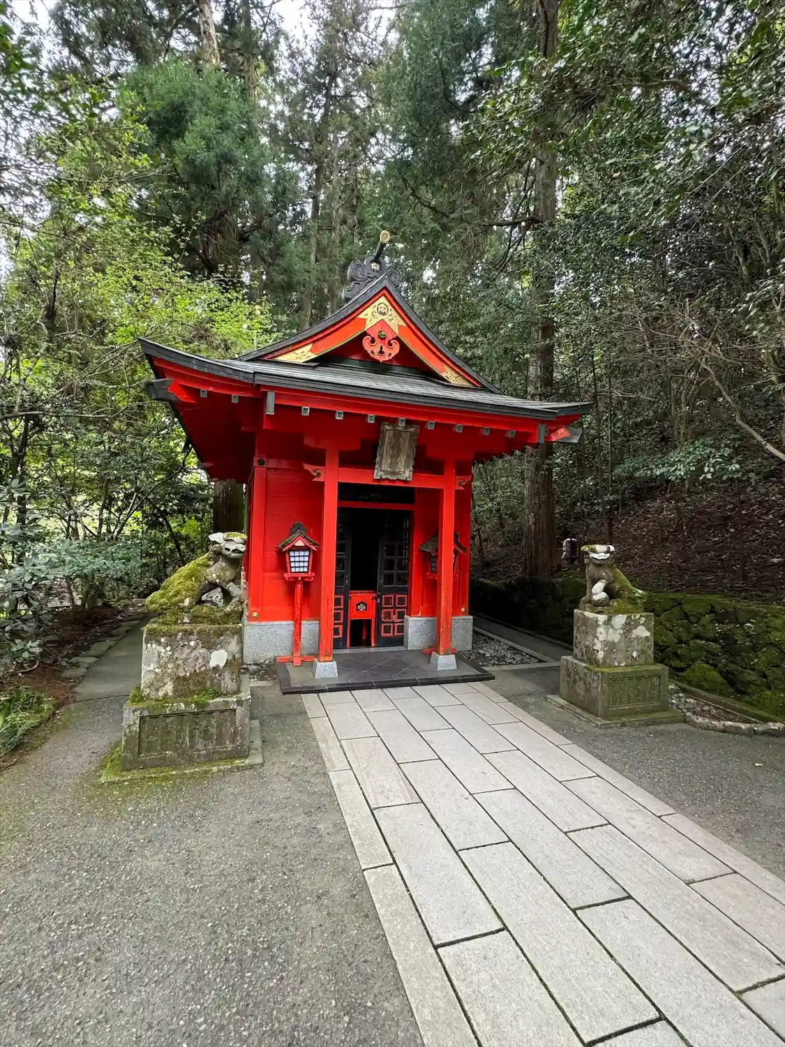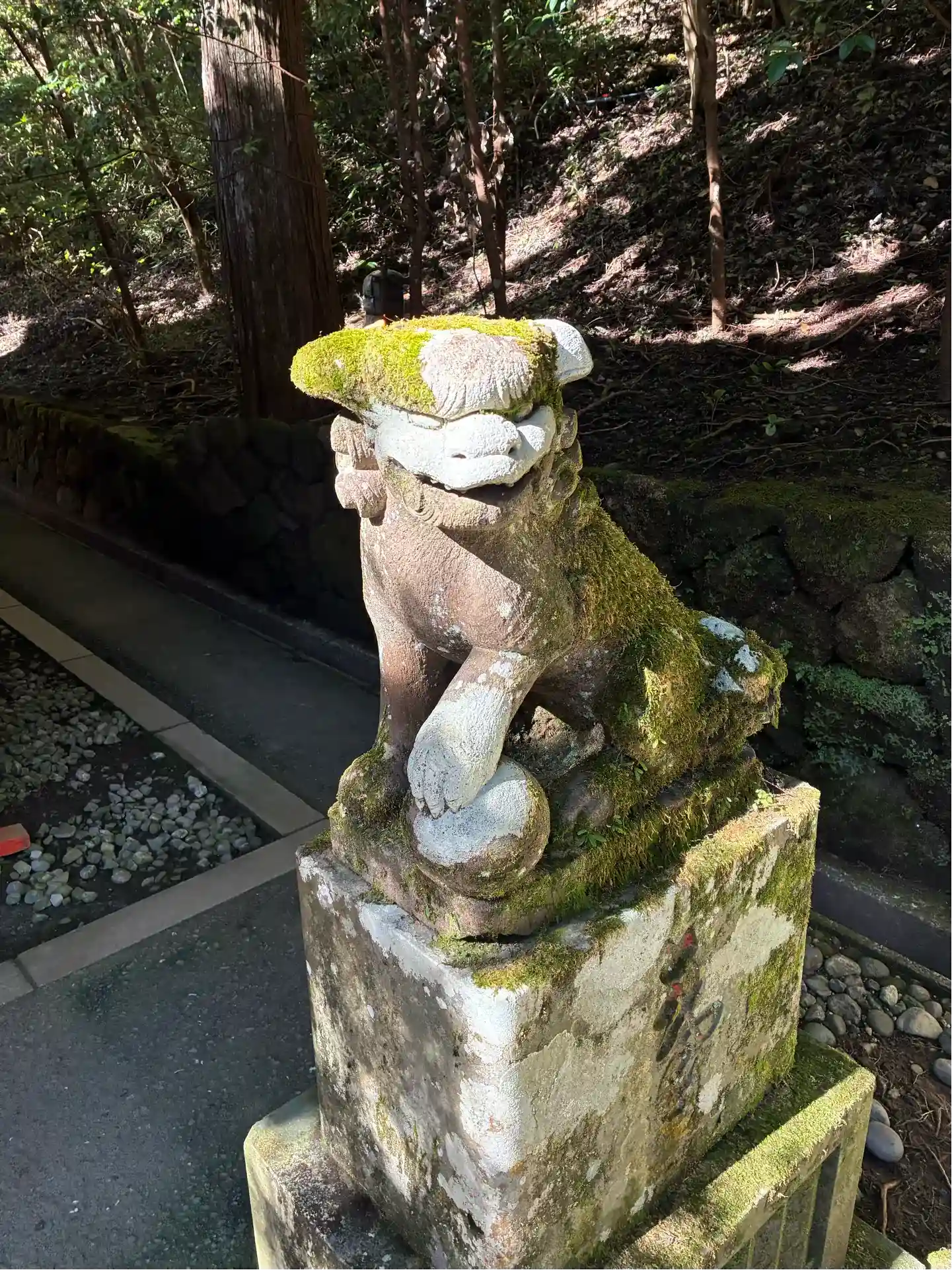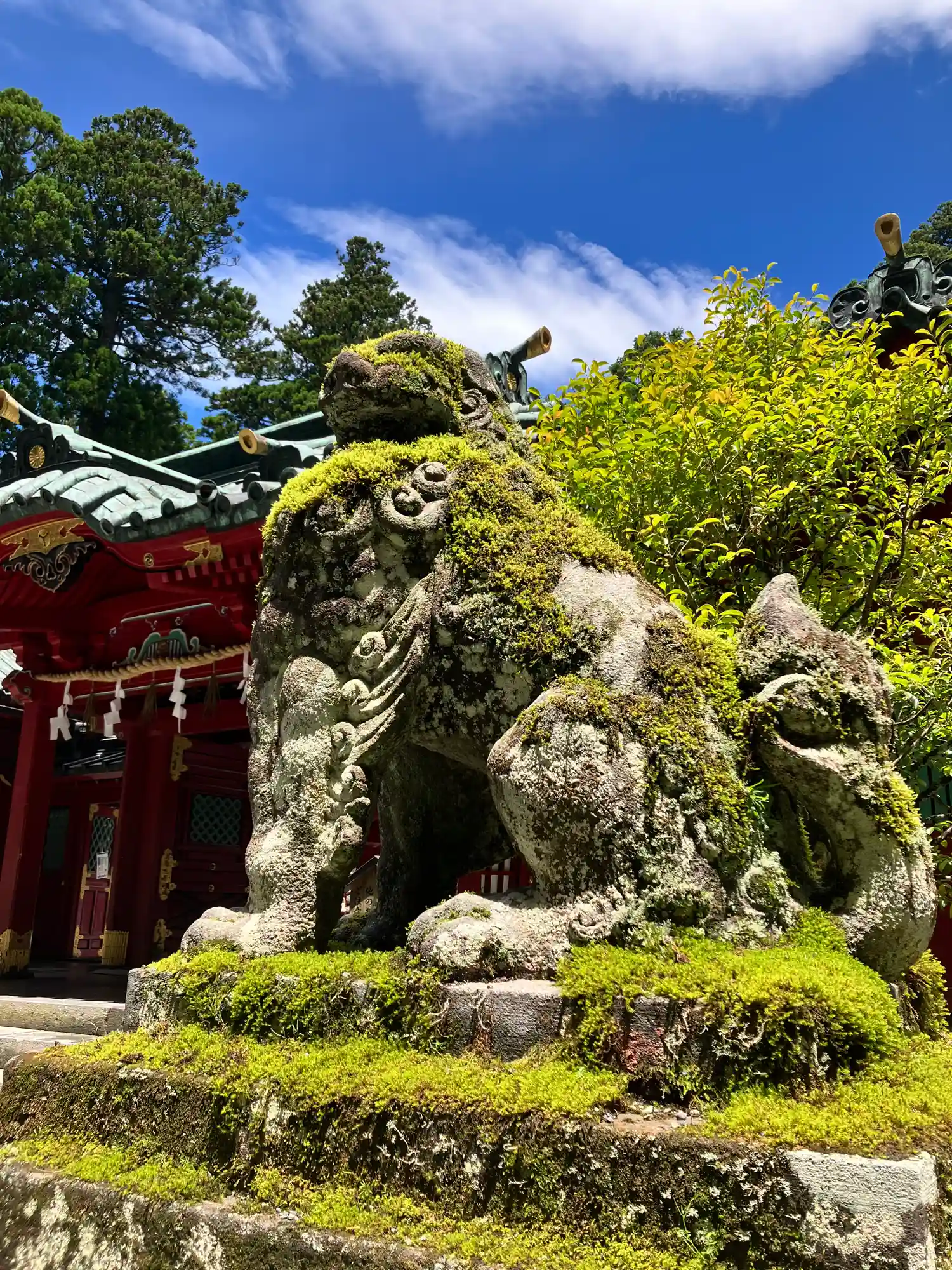 芦ノ湖畔とあってか、水の香りを感じました。苔むした狛犬が印象に残っています。