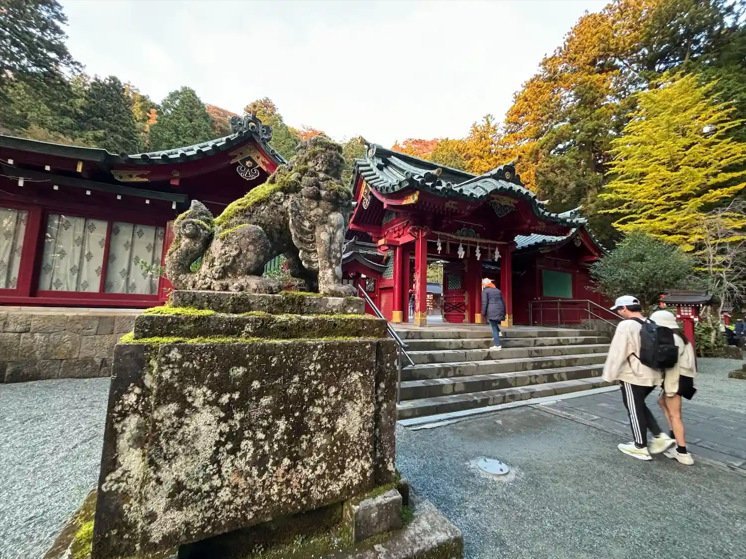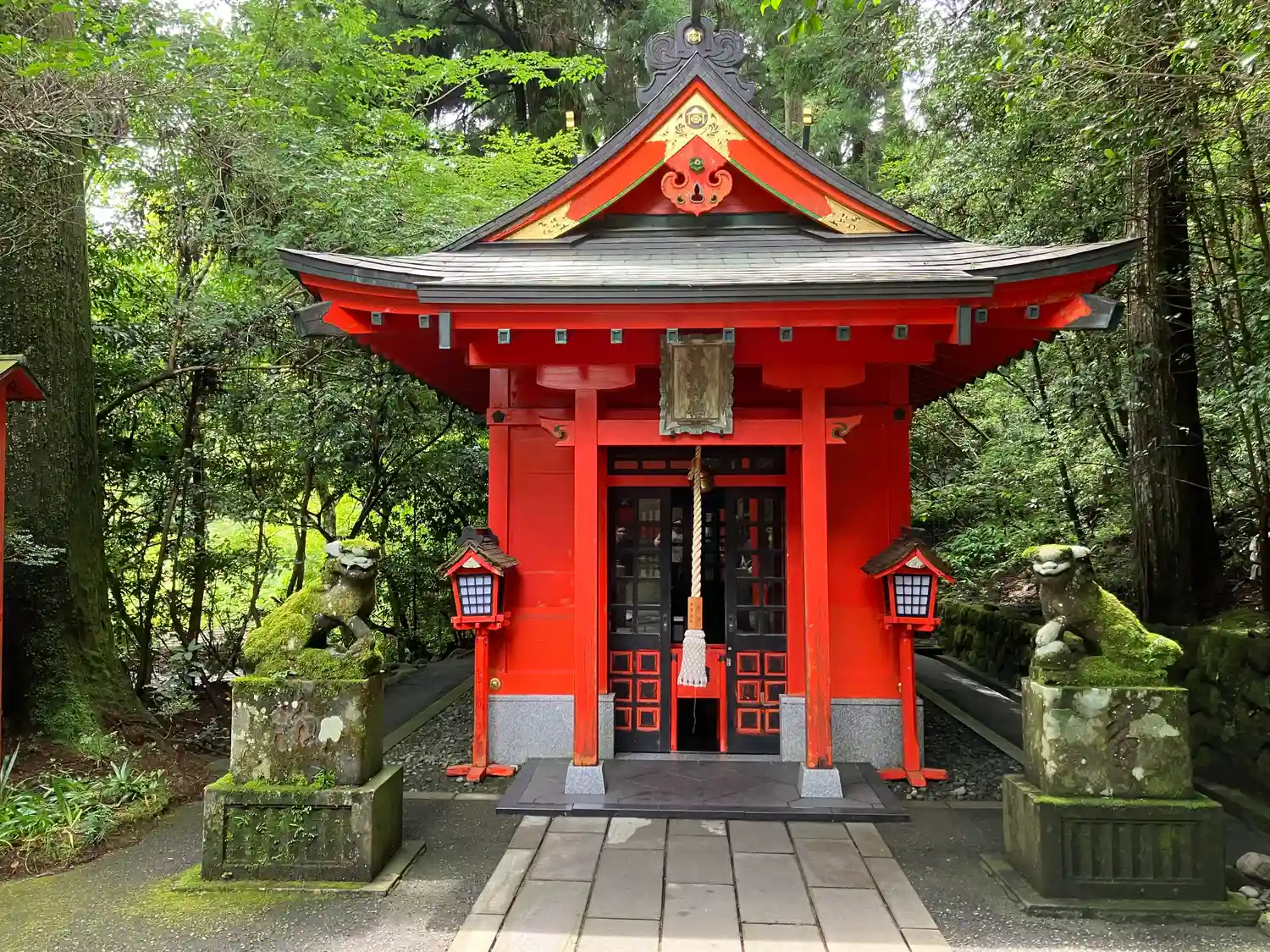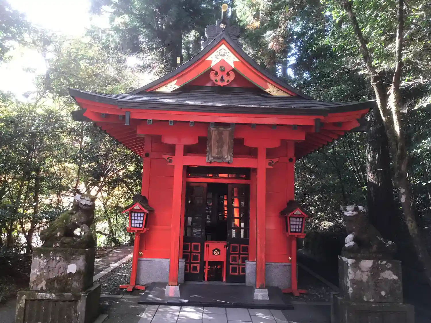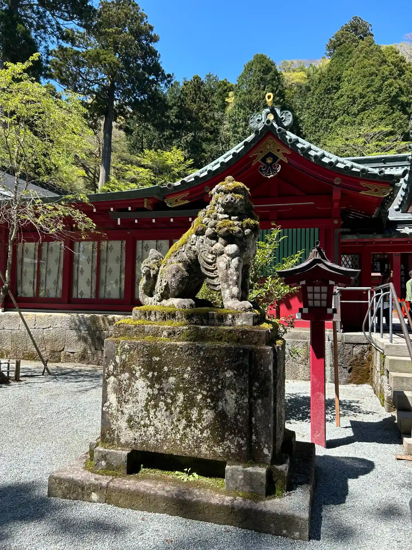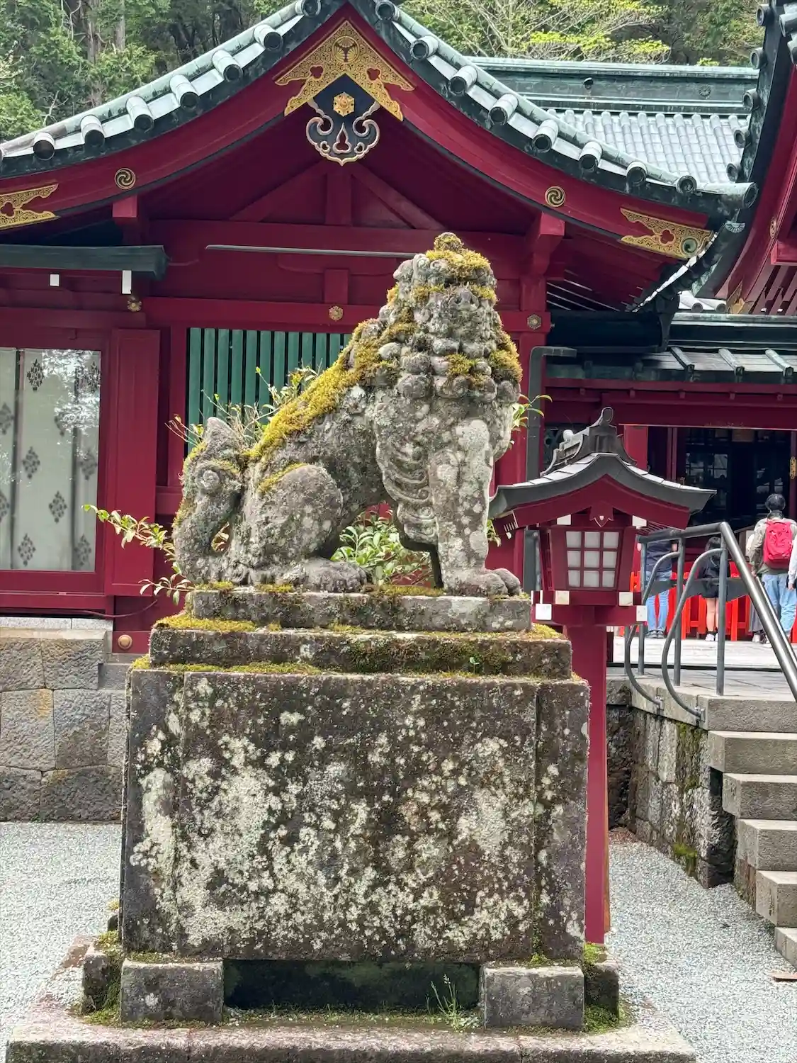 芦ノ湖畔とあってか、水の香りを感じました。苔むした狛犬が印象に残っています。