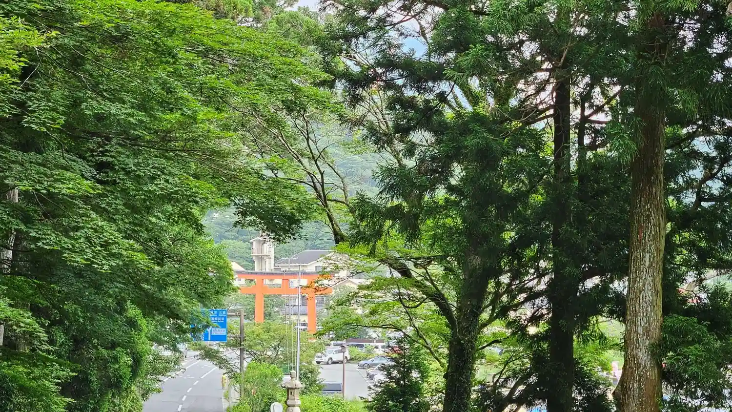 お盆の猛暑でも、箱根神社は涼しいです。