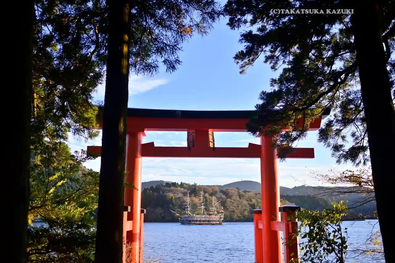 芦ノ湖の湖畔に位置する神社。
