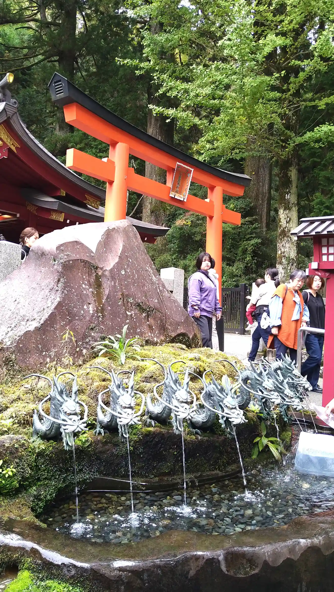 ロマンスカー終点の箱根湯本から急行バスで元箱根港駅で降り20分位歩いて参拝 九頭龍神社の新宮もお参…
