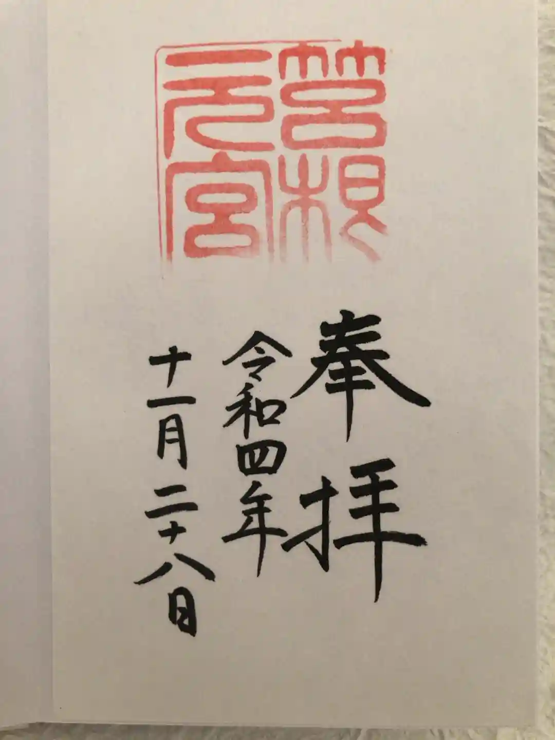 神社にご神職の方がおられたので書置き(初穂料:500円)を頂いてきました