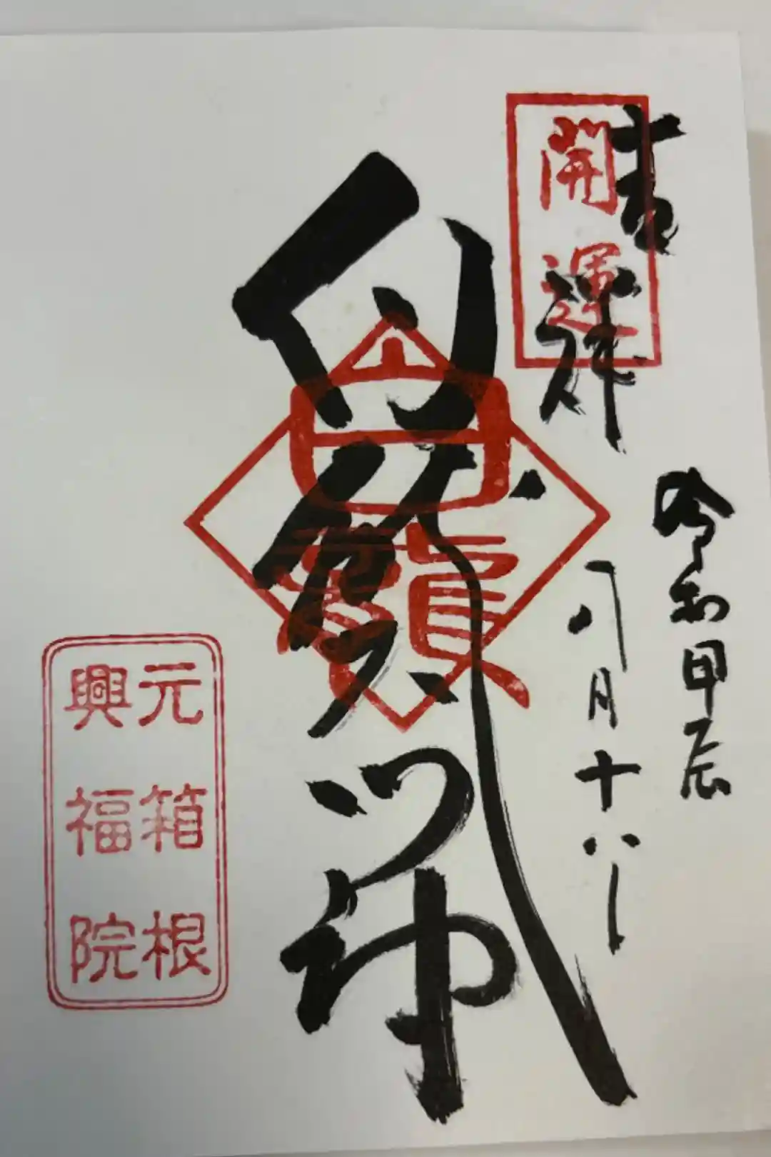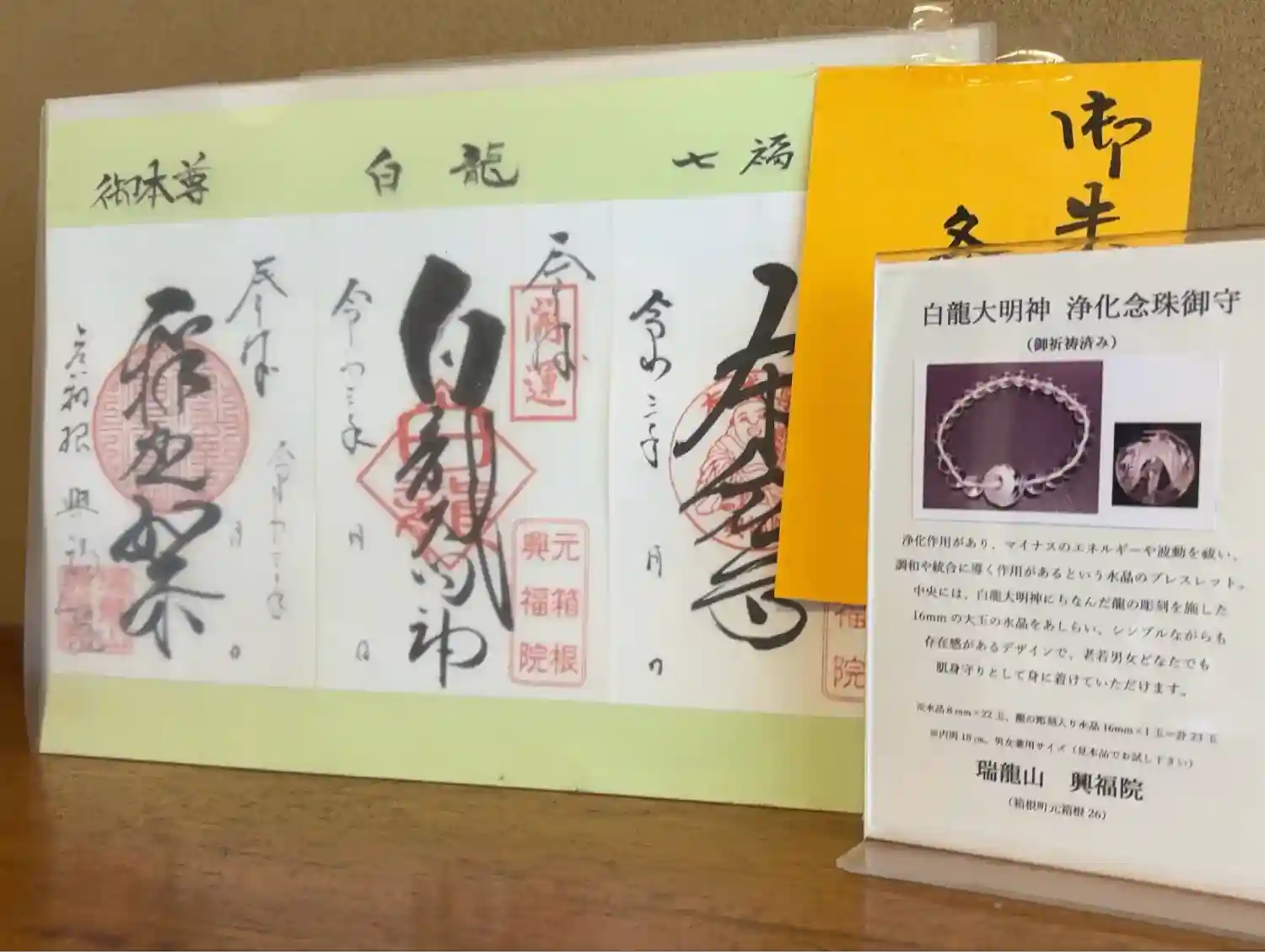 左から御本尊のお釈迦様、白龍神社(箱根園の近く)、そして布袋さんの御朱印