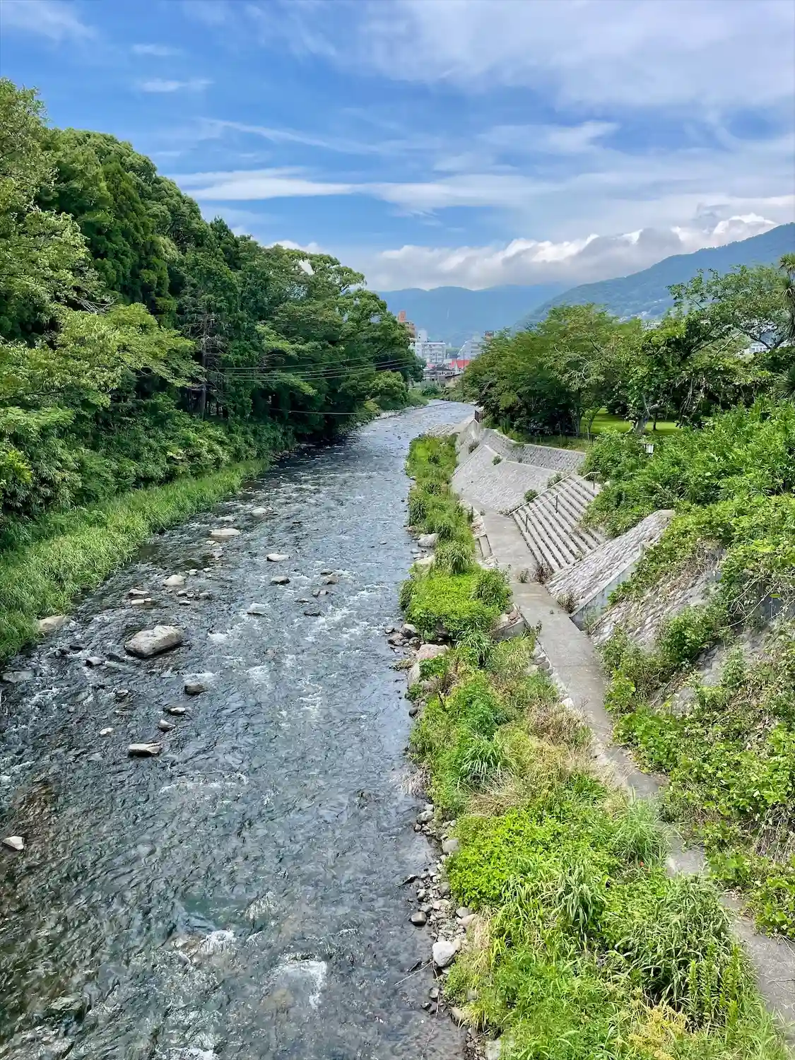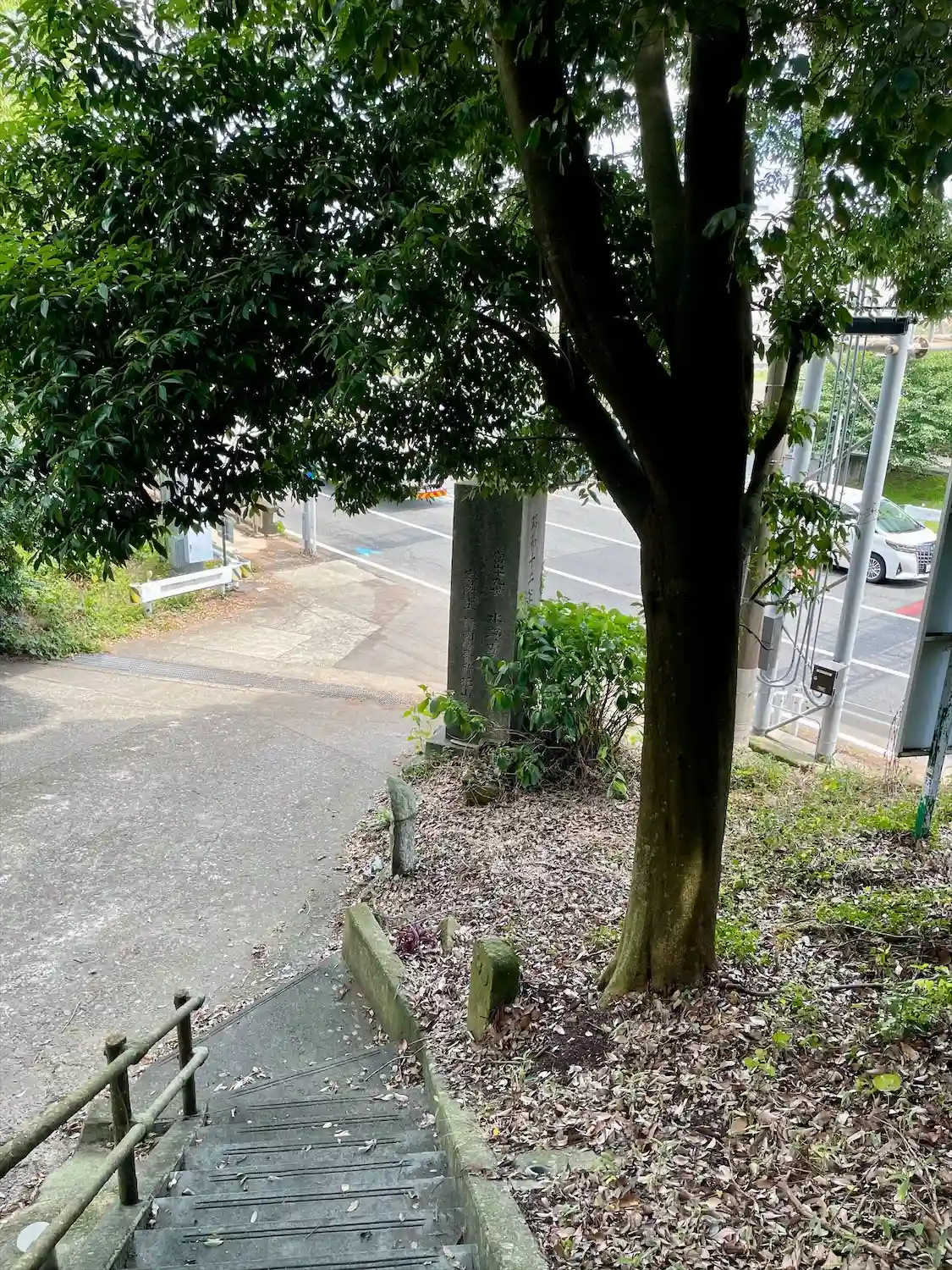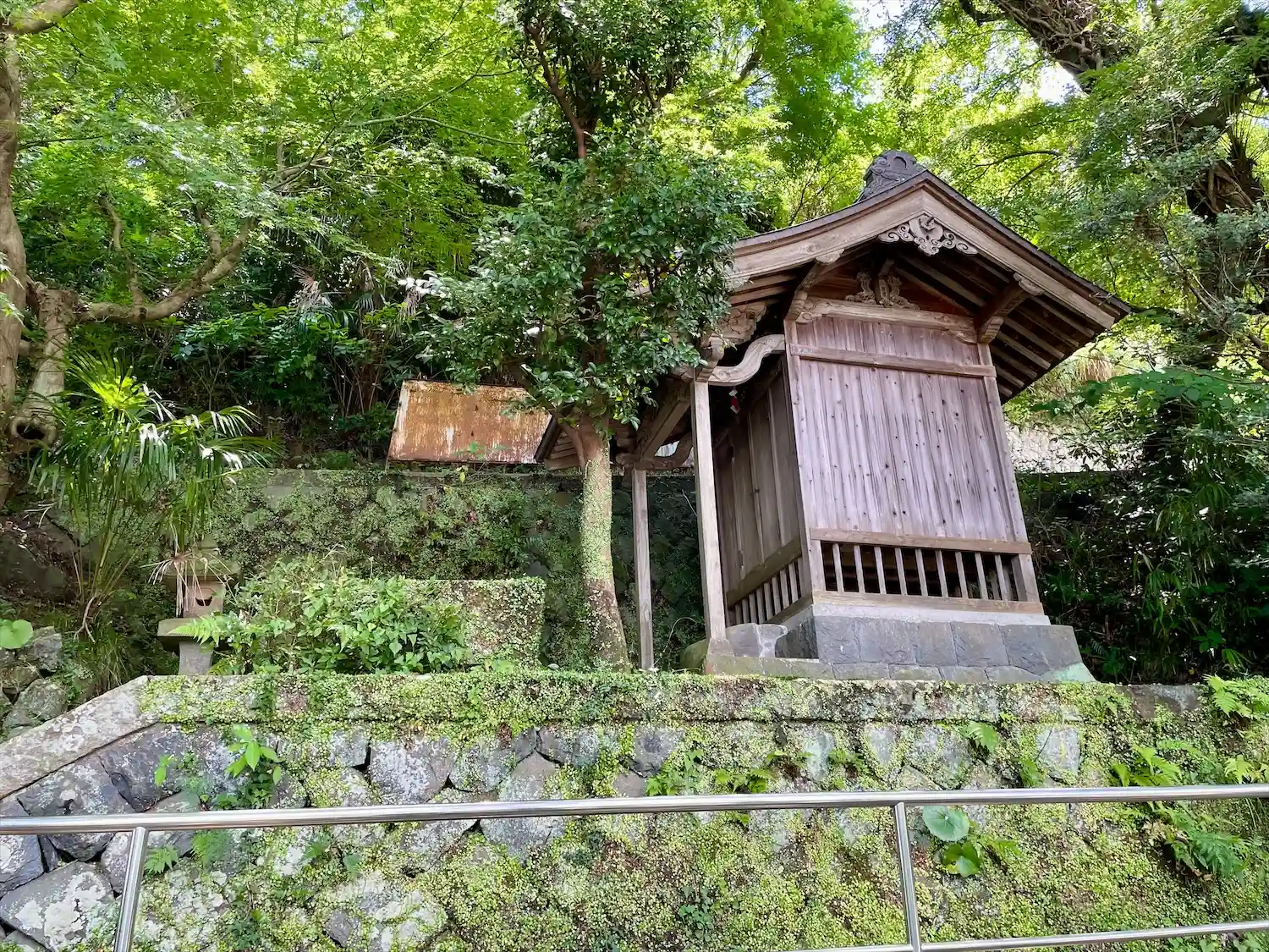 熱海と湯河原の境界線(静岡県と神奈川県の県境)となる千歳川沿いにある曹洞宗寺院「潮音寺」の参道入口の階段を登ったところに鎮座する小さな神社。