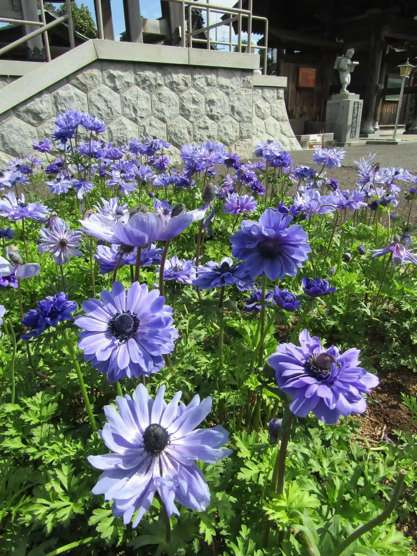 鐘つき堂の横にアネモネが咲いていました。