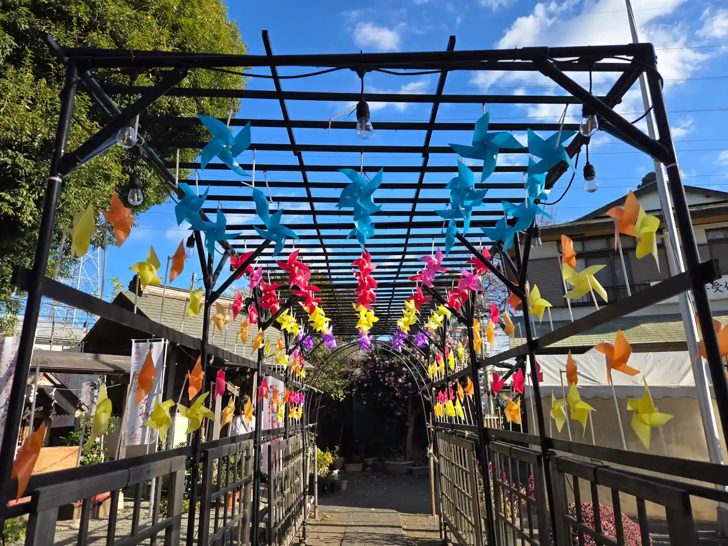 風車がくるくるとまわり、子どもがまわりではしゃいでいる様子が目に浮かぶ可愛らしい神社です。