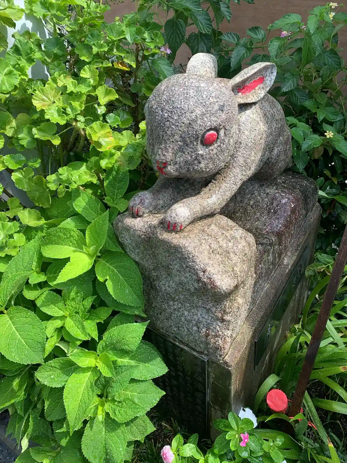 鳥居の足元に可愛らしいウサギさん