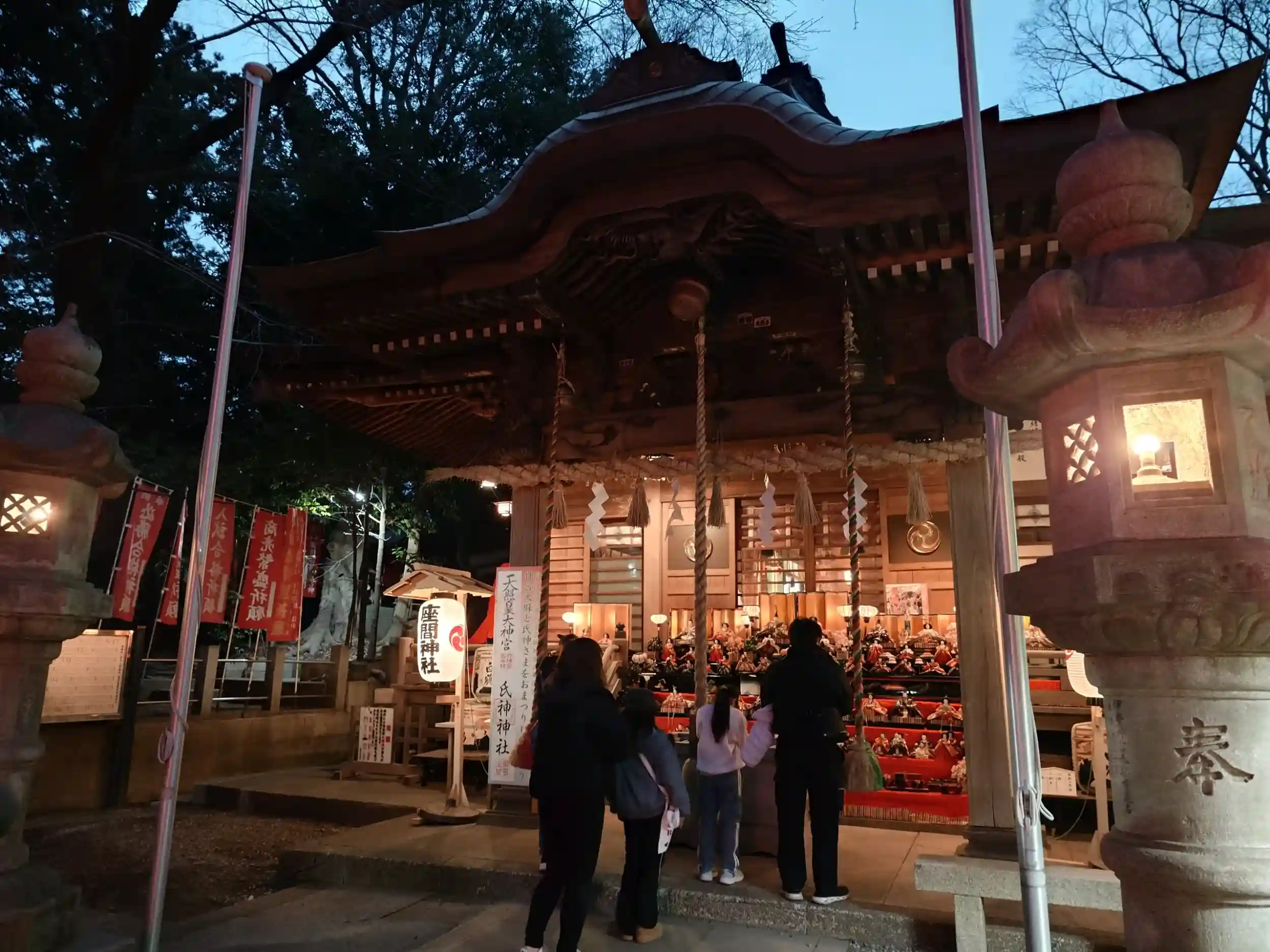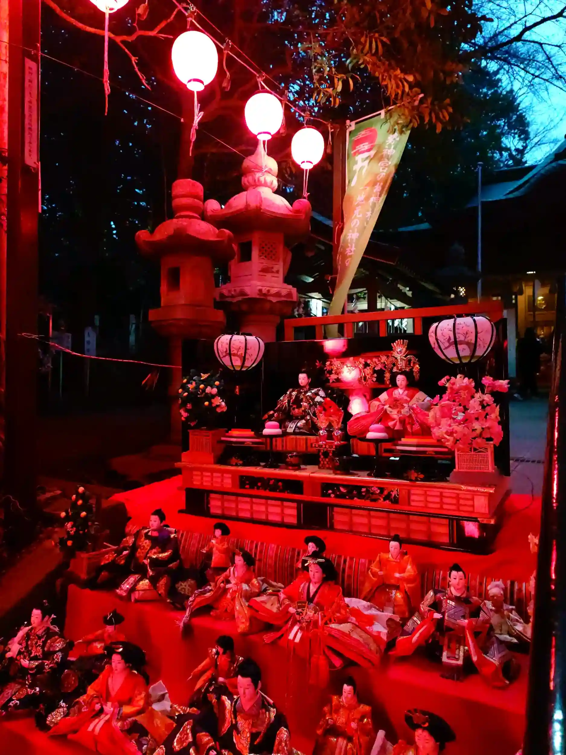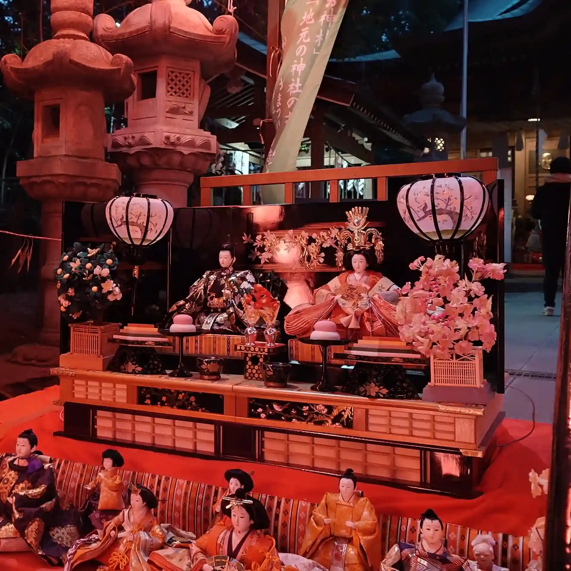 3月2日月曜日、仕事終わりにそのまま座間神社様のひな祭りに行ってきました。桃色にライトアップされたお雛様はとても幻想的で、昼間とはまた違う雰囲気が素敵でした✨