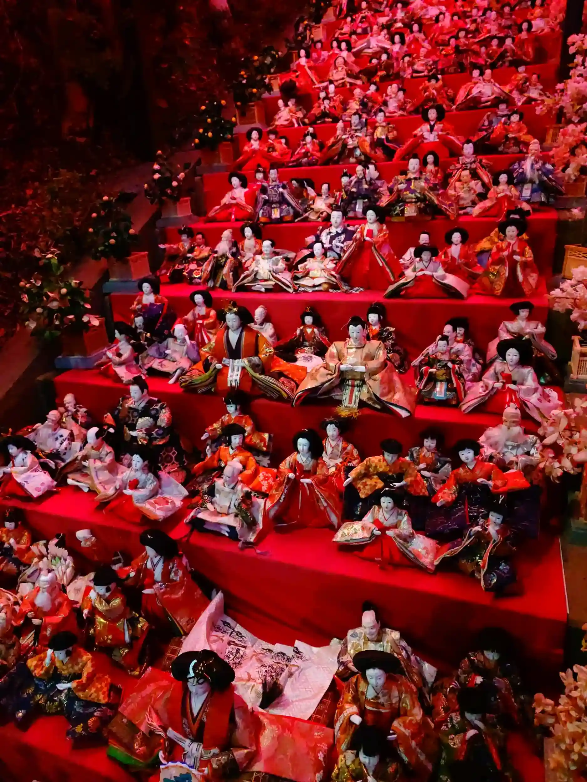 これだけ多くのお雛様🎎が桃色にライト