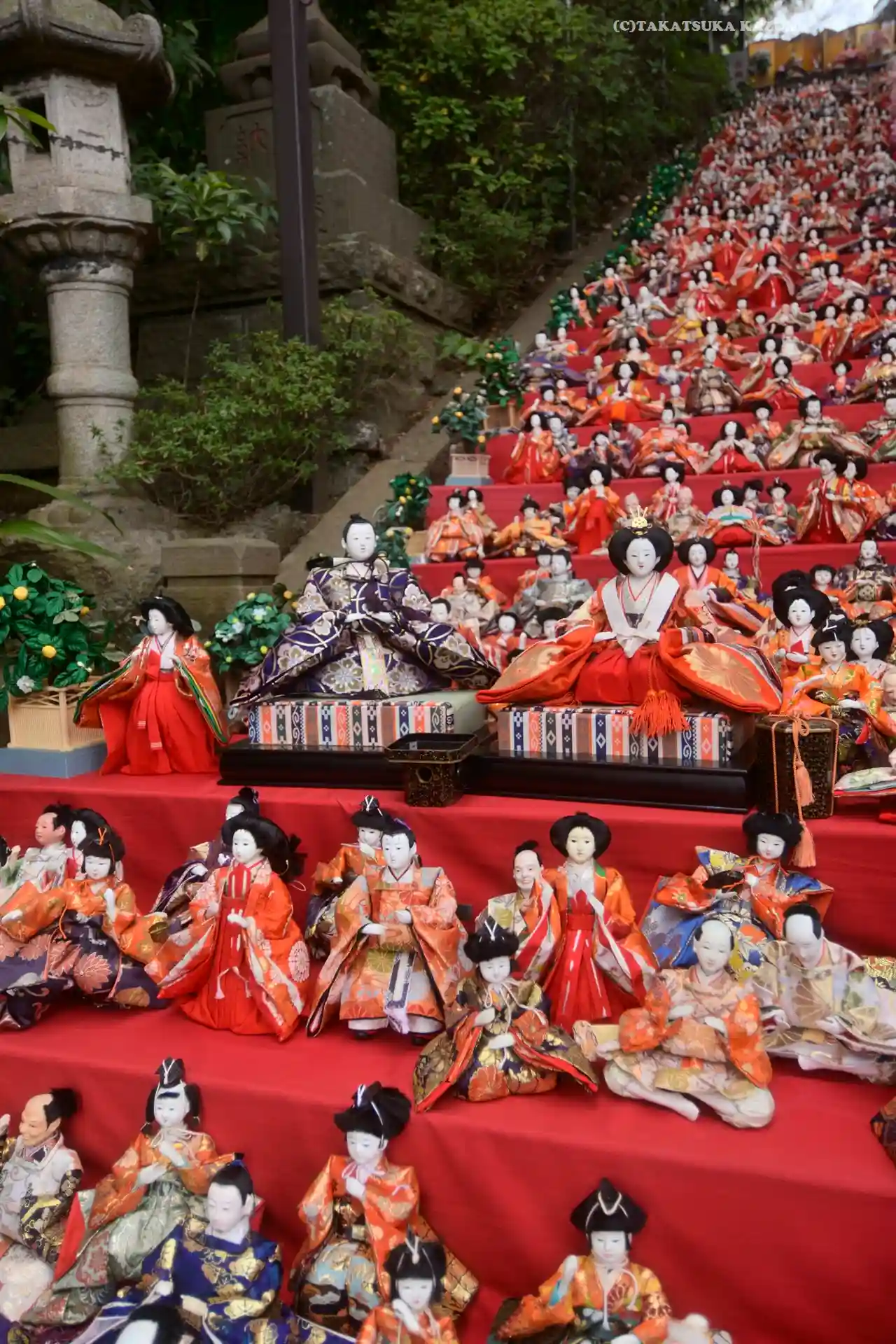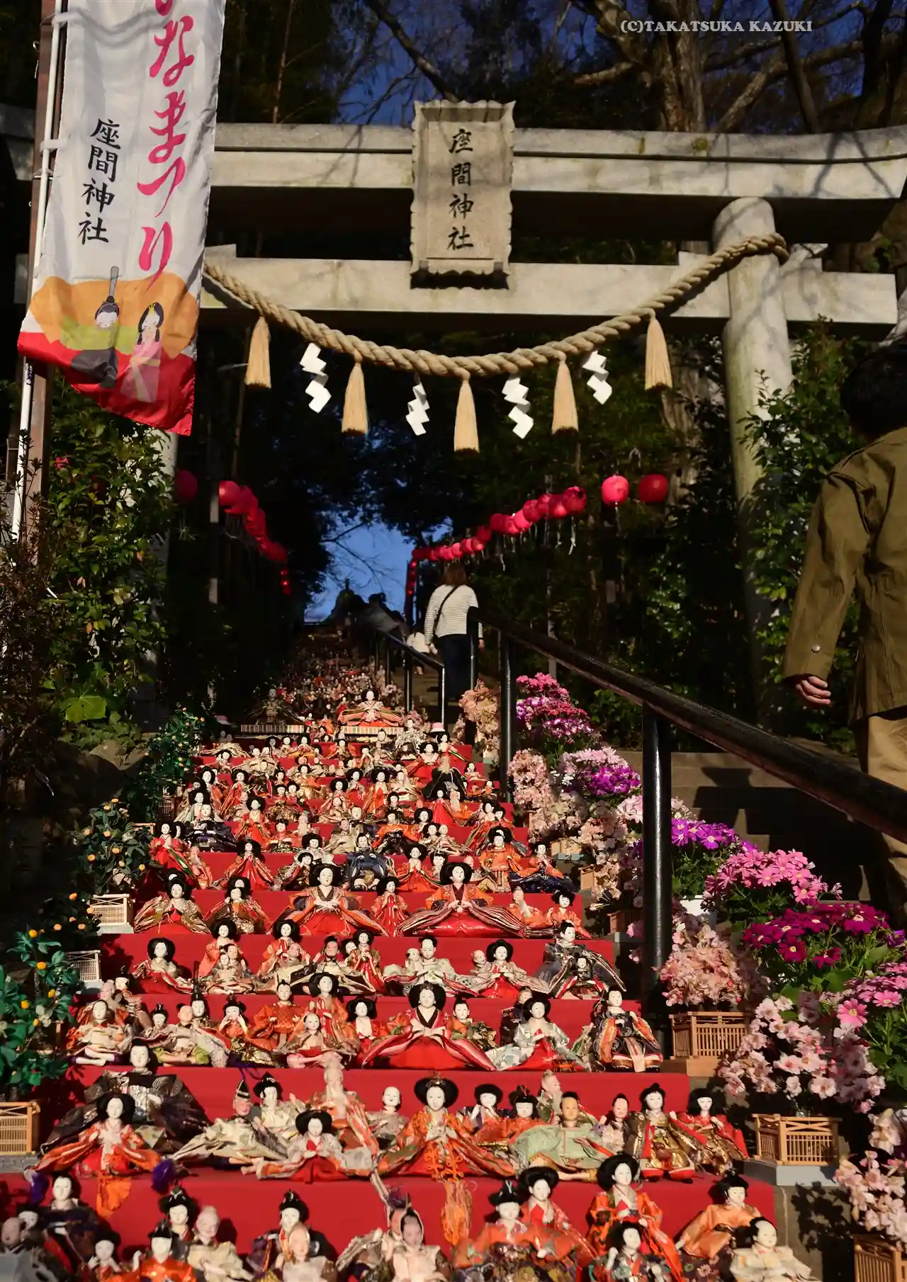 参道の階段を埋め尽くすひな人形^^