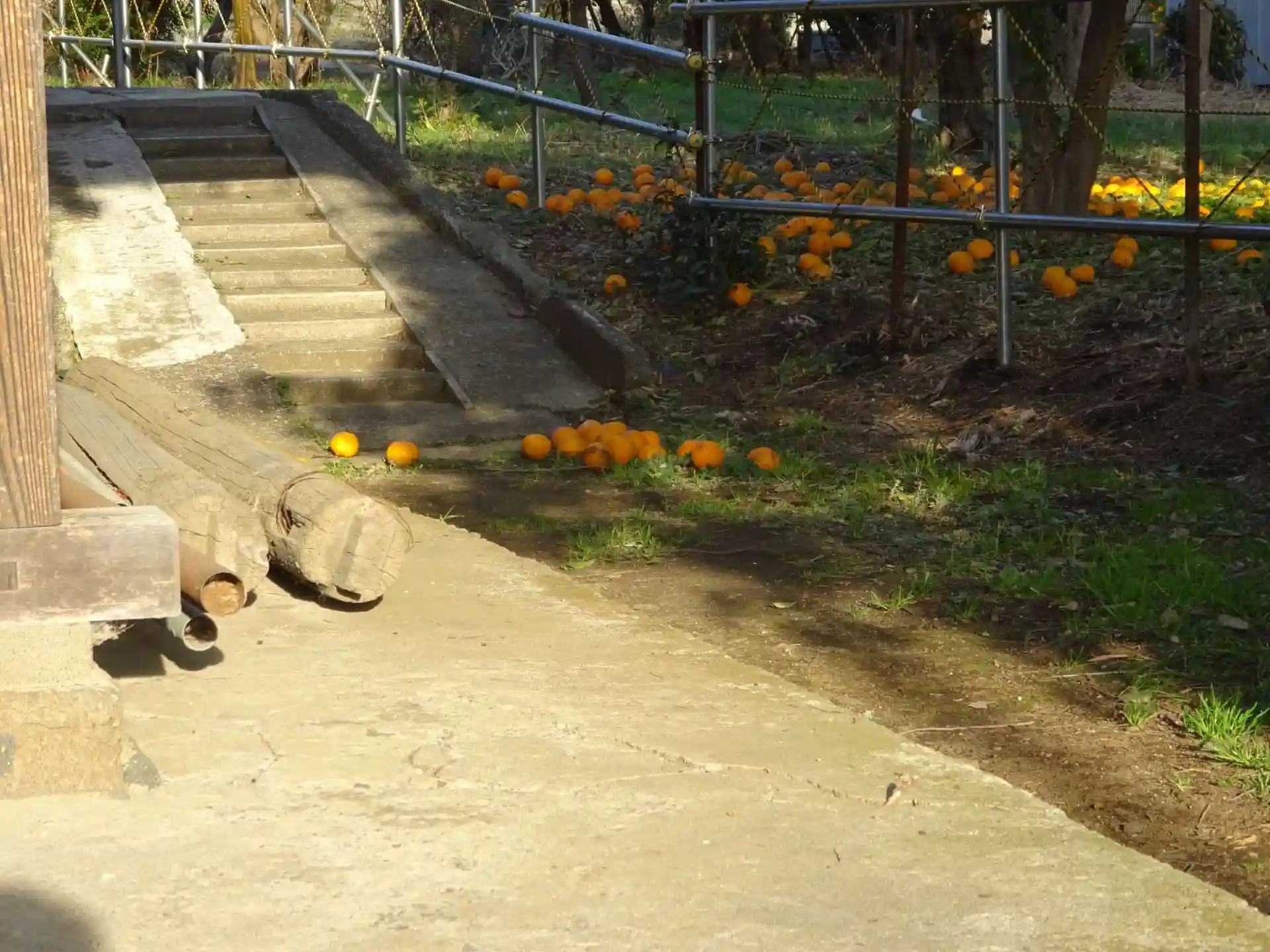 社殿のわきには 隣接地に生えているミカンの木から落っこちた実んこがい~~っぱい落ちてました^^
