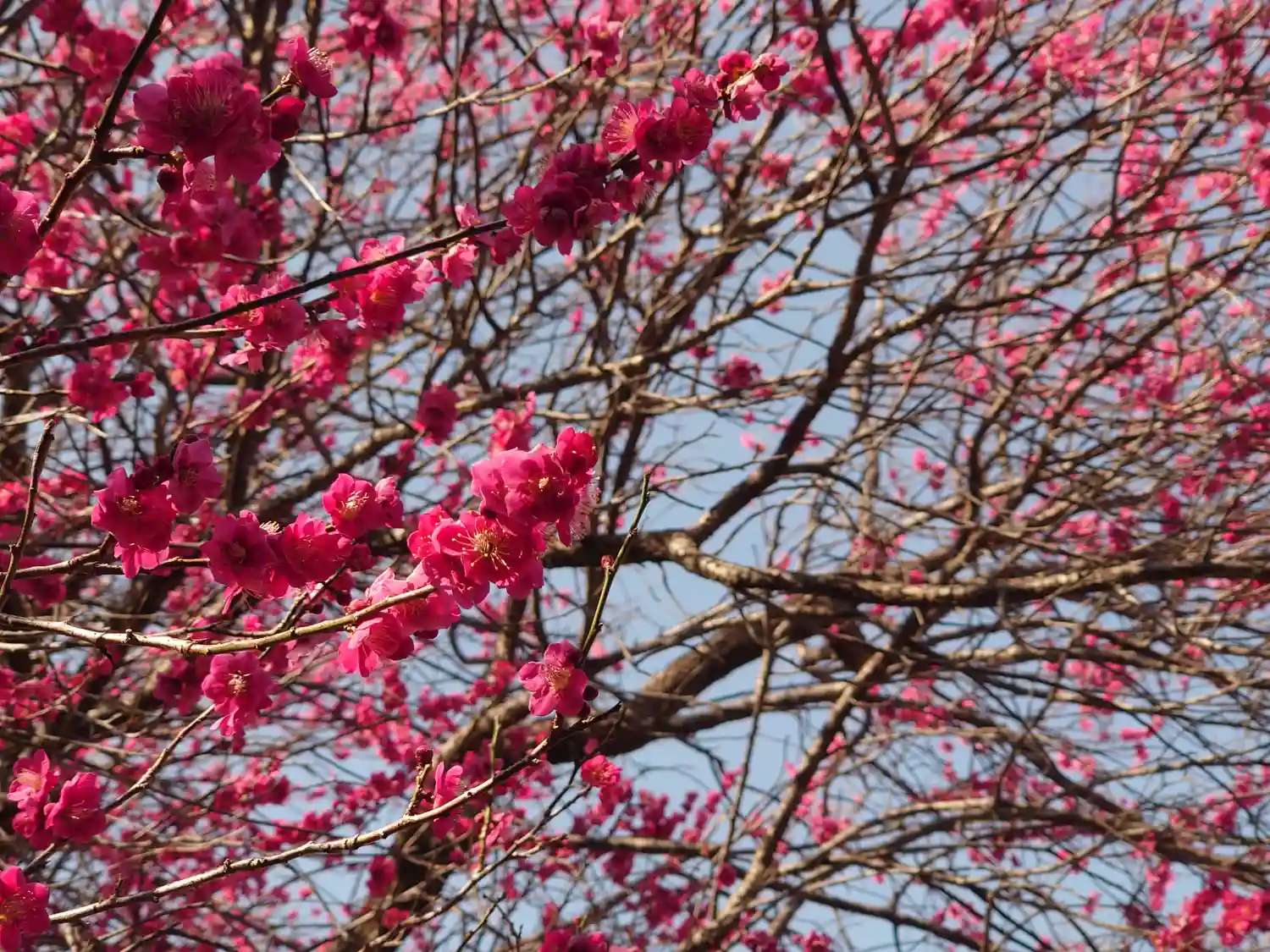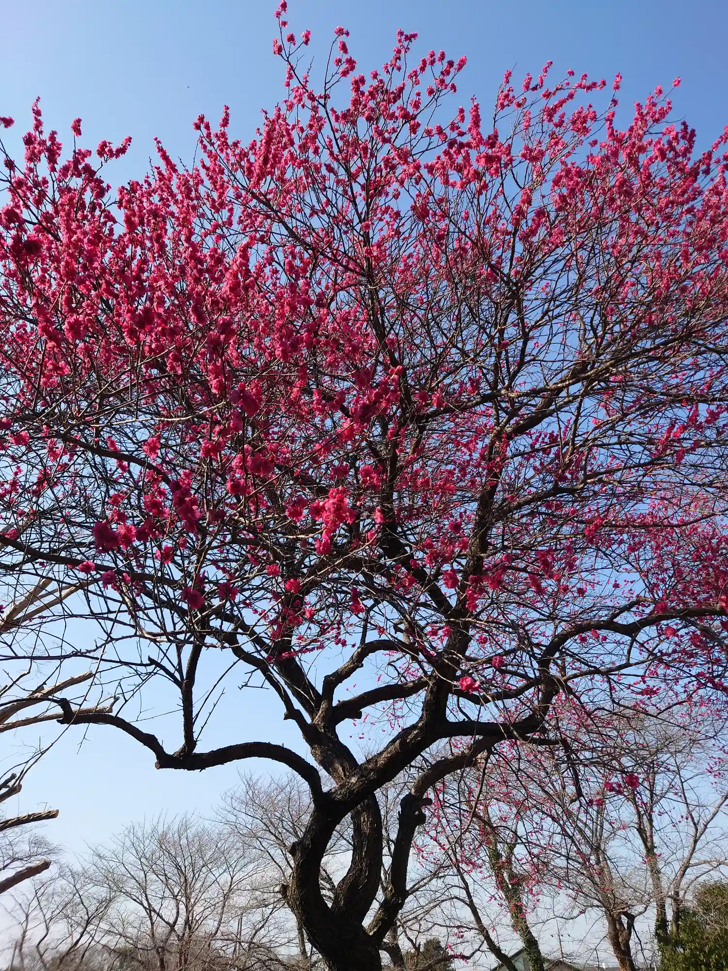 赤いお花は寒緋桜ではなく梅でした。コメントくださったパン吉さん、申し訳ありません。