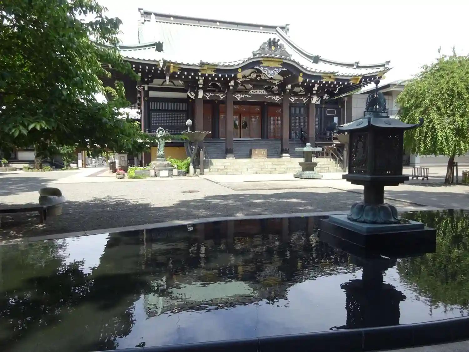 本堂 境内に綺麗な池^^ 無風だと鏡面の様に^^ 逆さ富士ならぬ 逆さ本堂が現れます^^