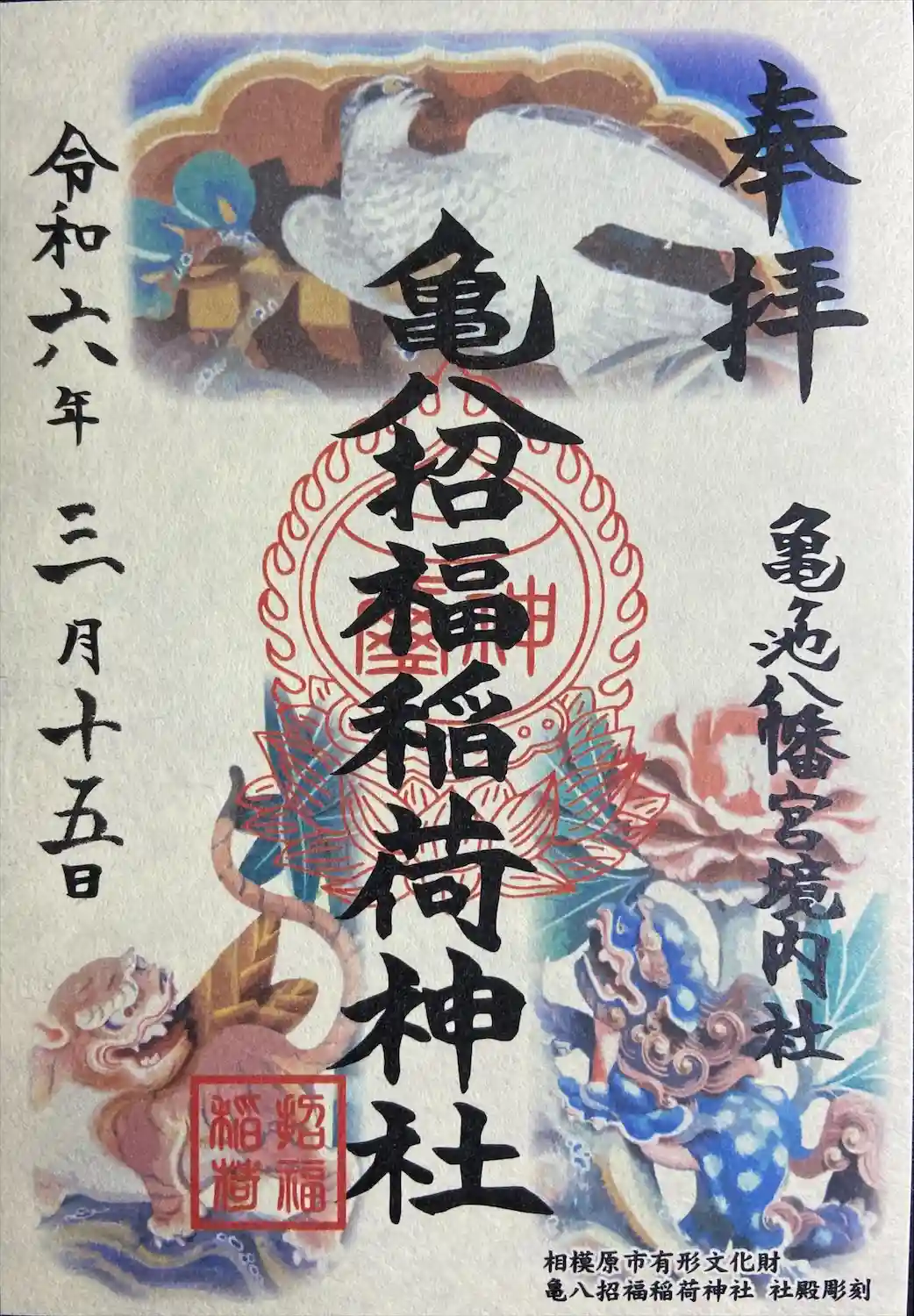 神奈川県相模原市中央区上溝に鎮座する亀ヶ池八幡宮の境内社で、「亀八招福稲荷大明神」と称し商売繁盛、…