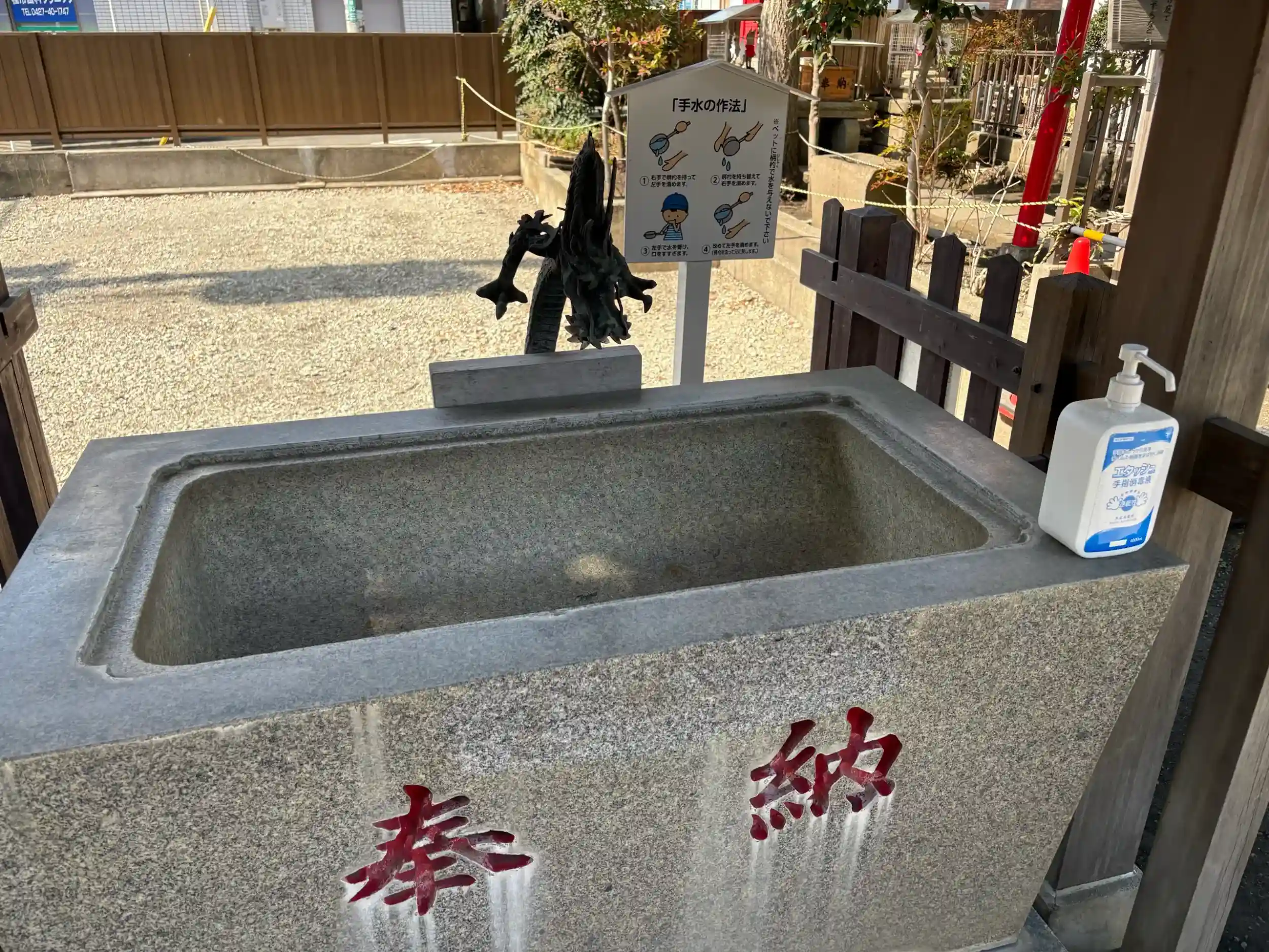 駅前の商店の通りにありました。様々な施設と隣接しているようです。手水舎は水が出ませんでした。御朱印は書き置きでしたが、特徴的です。