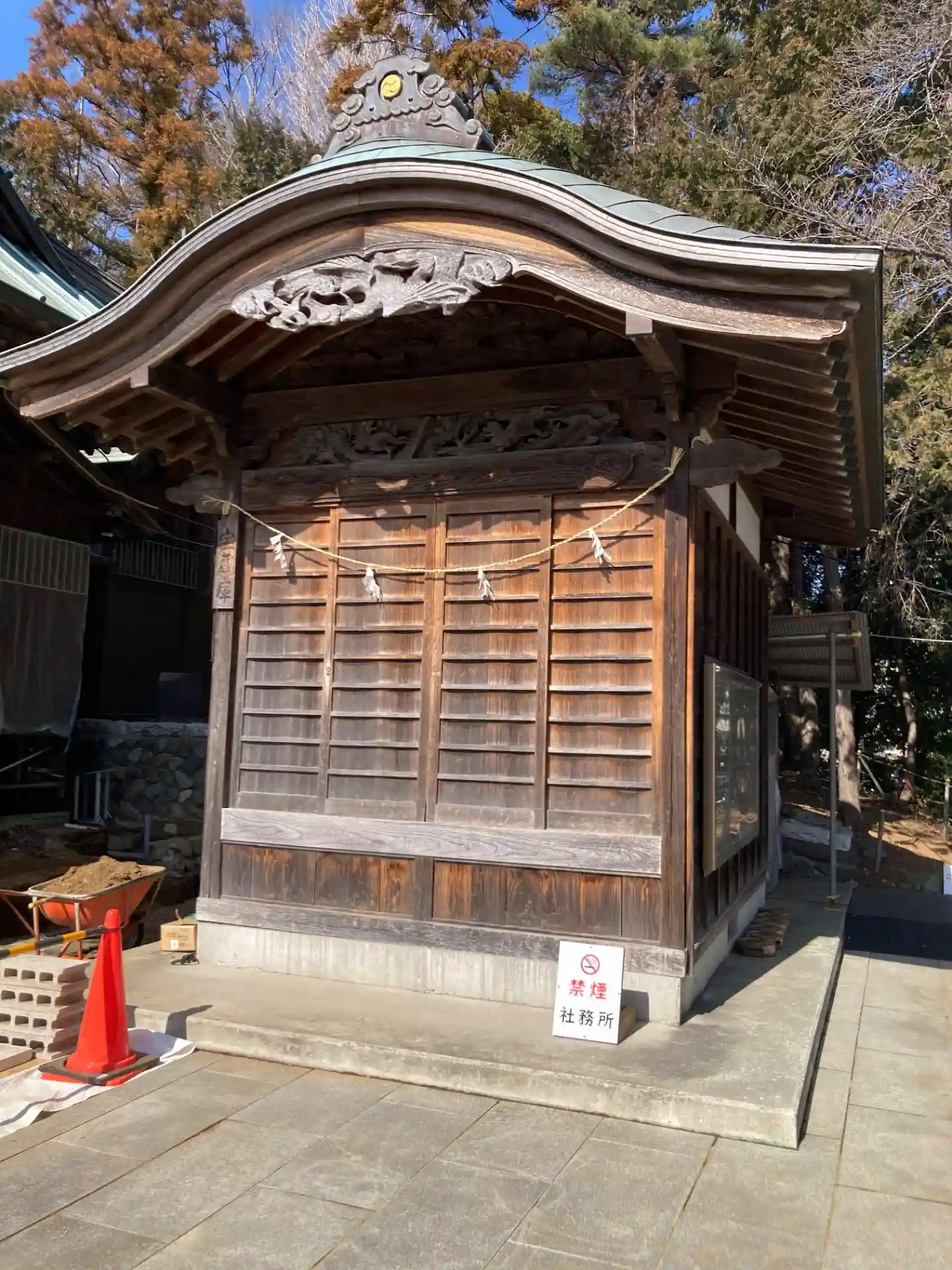 拝殿前は工事中でした。5月末迄のようです。