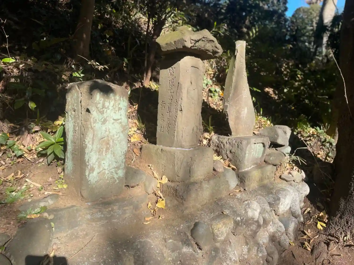 地神塔(左)、道祖神(右)、真ん中はわからず。