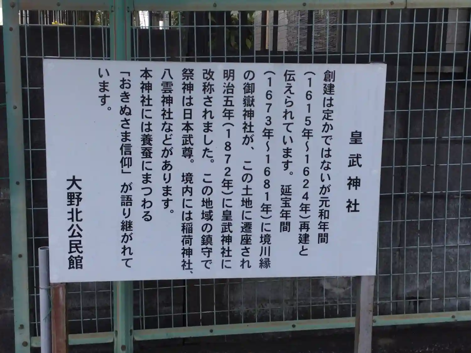以前は境川に沿った地に鎮座しており、御嶽神社と称していました。明治の神仏分離令により現在の皇武神社…