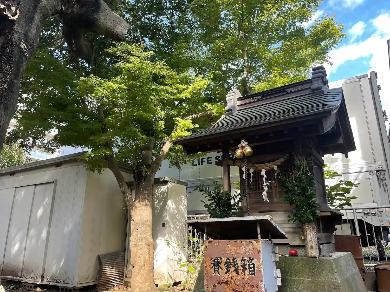 神社の向かいにある