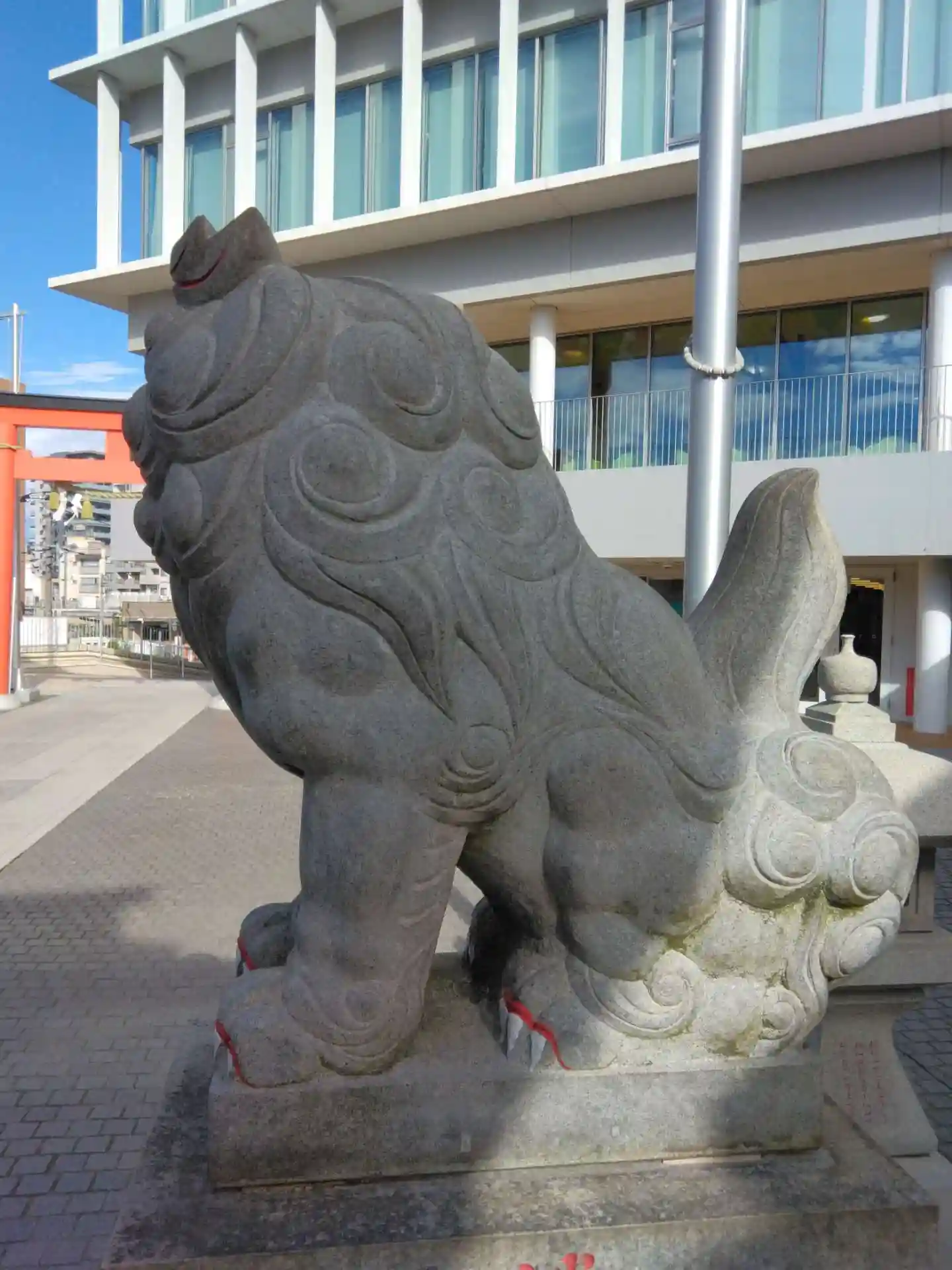平成28年に再開発により、商業施設の中2階に鎮座しました。