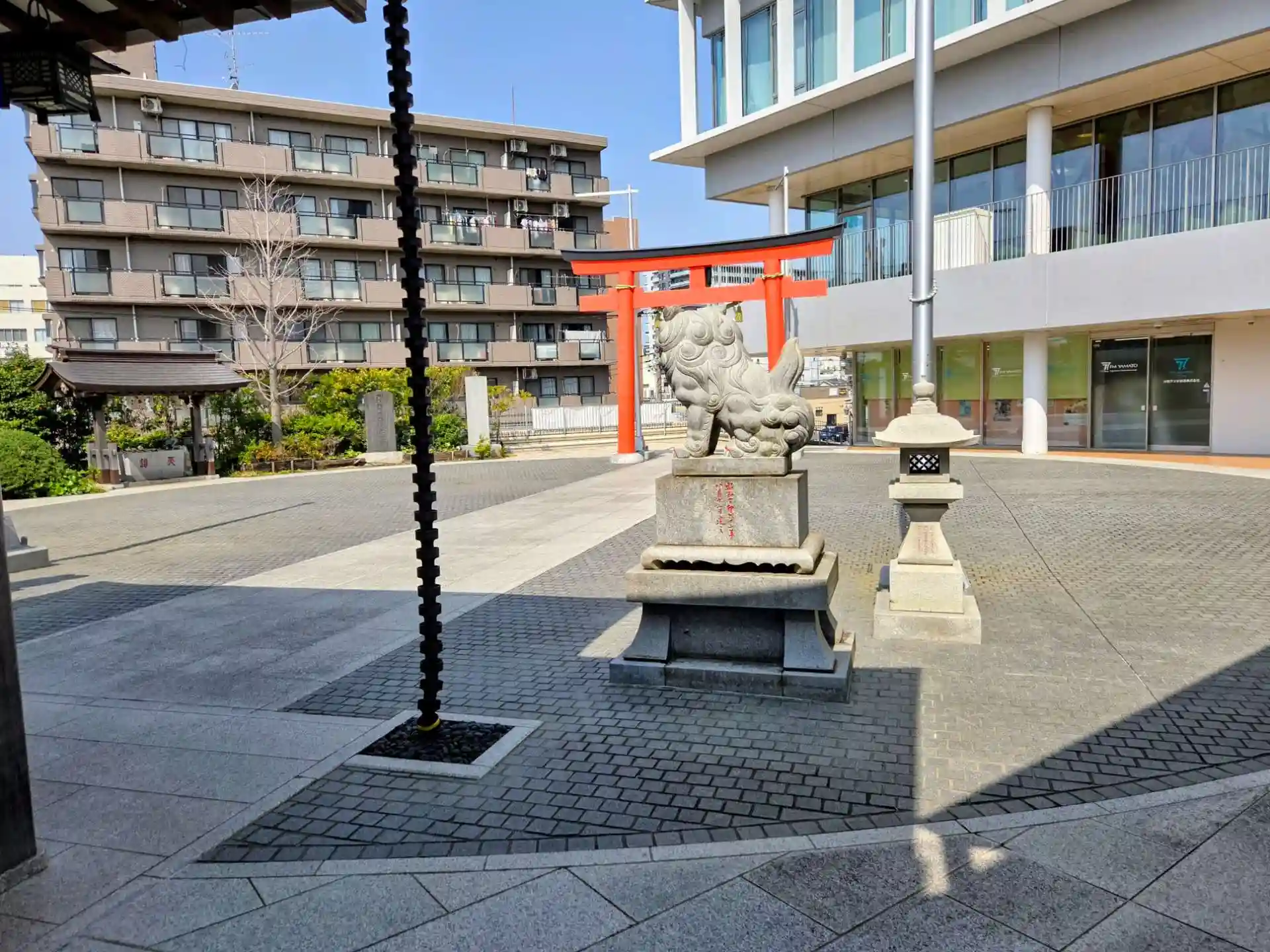 大和駅前のシリウス(店舗や市立図書館が入ってます)の中二階に鎮座しています。もともとは近隣の厚木基地内にあった神社で、天照大神と戦死者の霊を祀っていました。敗戦を機に天照大神を祀っていた社殿を譲り受け、現在の地に遷座したものです。