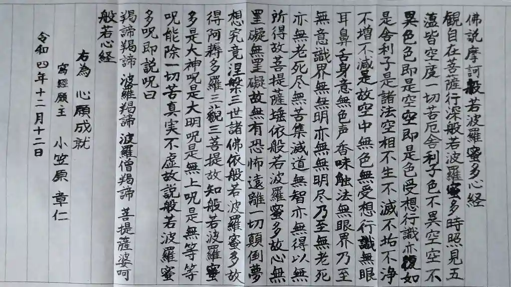 ありがたく拝受し、そのあとすぐに同封されていた写経心得に従ってお写経をして、郵送で納経しました。