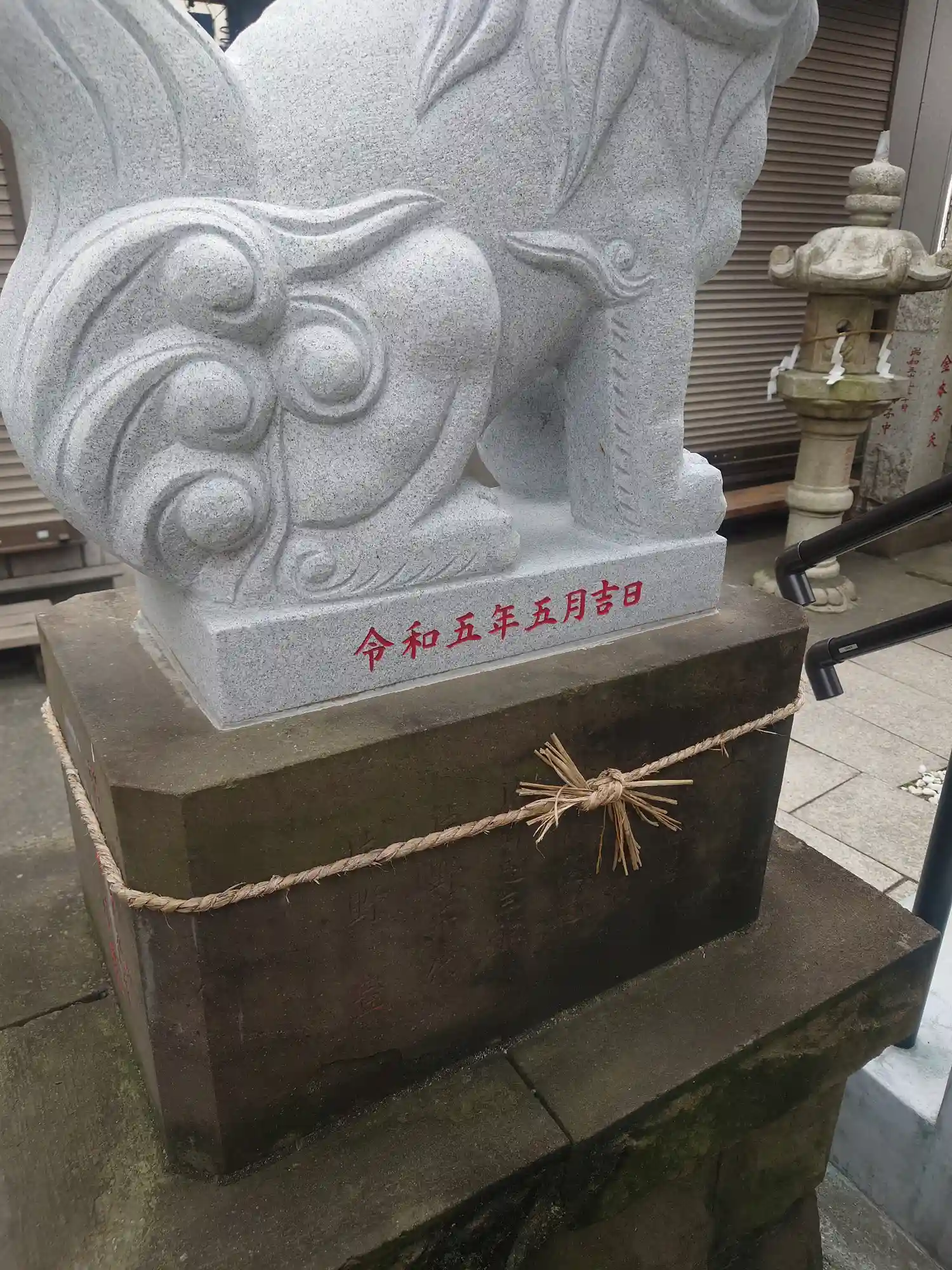 タウンニュースによると令和5年5月27日に除幕式がおこなわれ、創建当初建立された狛犬は欠損やひび割れなどが進んでいたことから再建がされたそうです。