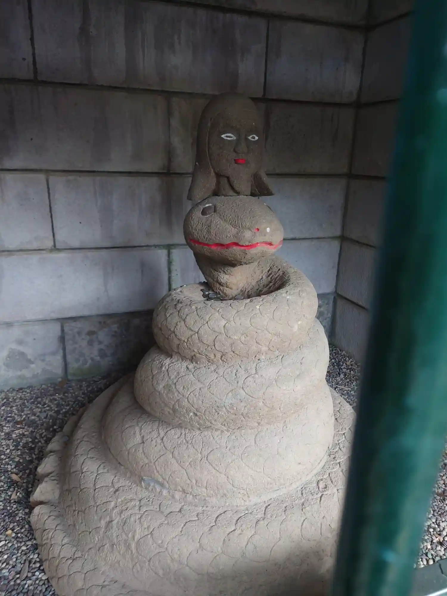 宇賀神かと思いましたが、蛇神の頭に乗っているのは女神様だそうです。