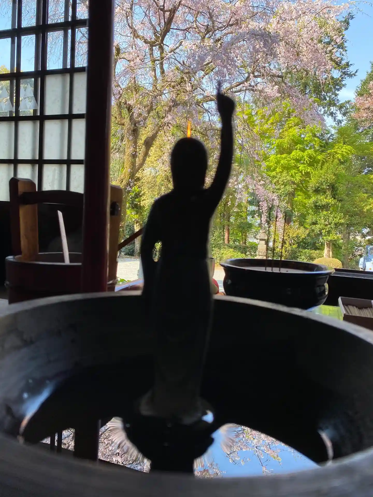 満月🌕で本堂の屋根が照らされてきれいでした。じ〜っとして外を眺めているだけでも心は鎮まります。仏教…
