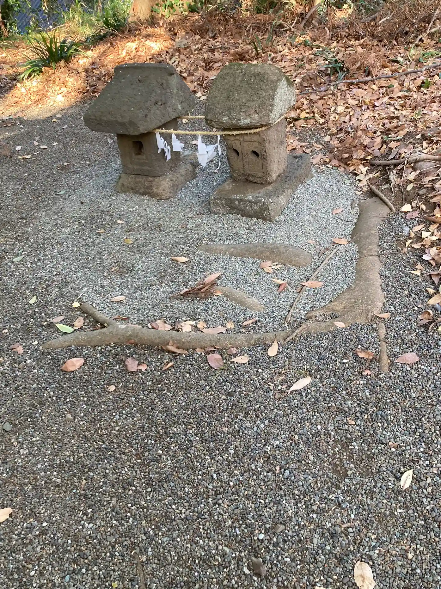 社殿裏手の石塔群↓