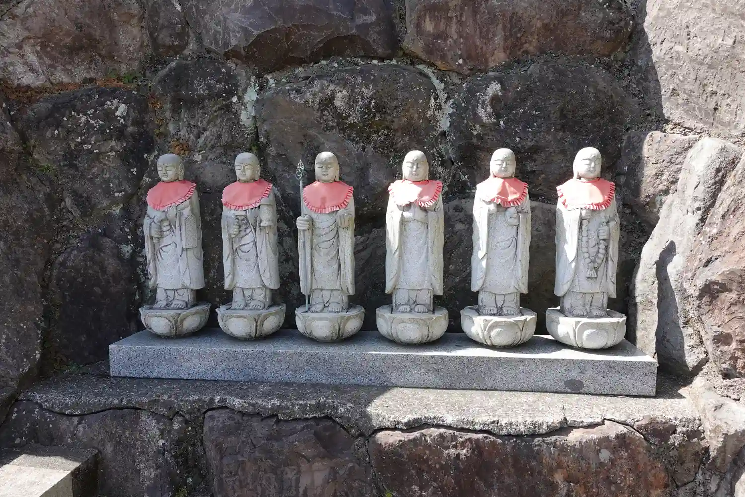 路地に入って、正面に六地蔵がお出迎えです。