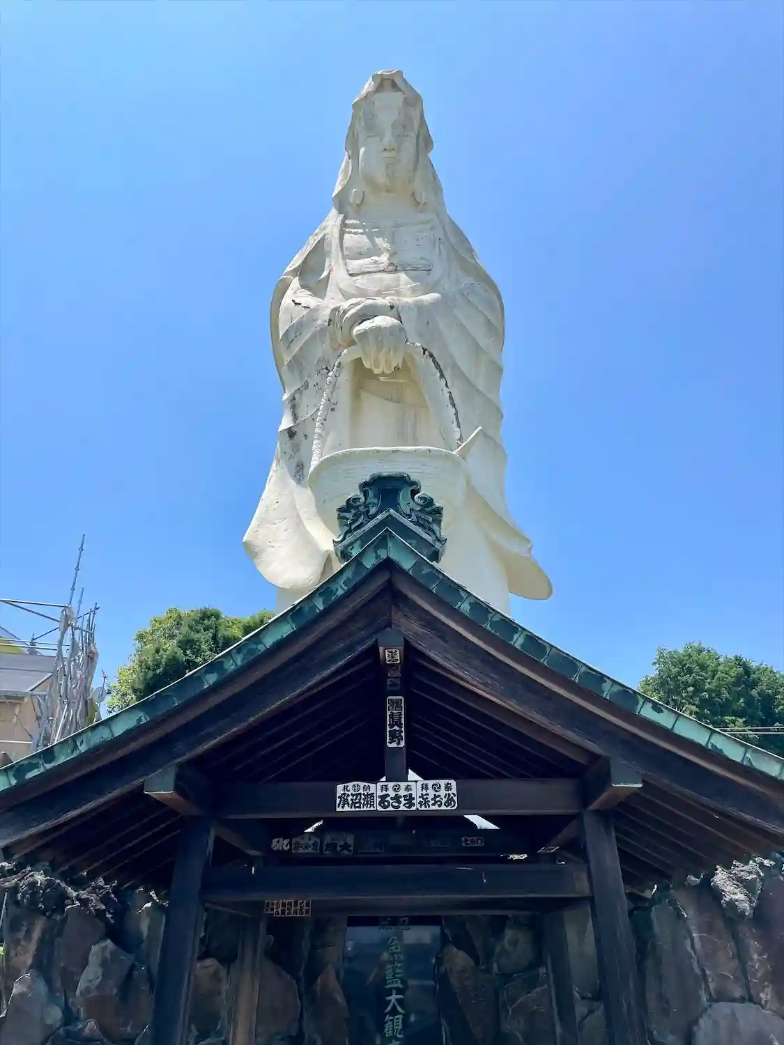 観音様の眼下には、相模湾の青い海が広がっています。