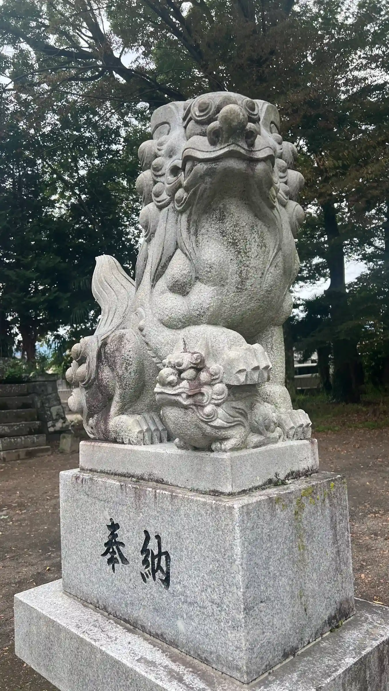 境内は広々とした開放感に包まれています。社殿の背後には高木が立ち並び、風にそよぐ枝葉の音が穏やかに響きます。密生しすぎず、適度に陽光を通す木立の配置が心地よく、昼下がりには木漏れ日が社殿の屋根や石畳をやさしく照らしていました。その景観が、静謐ながらも温もりを感じさせる空間を作り出しています。