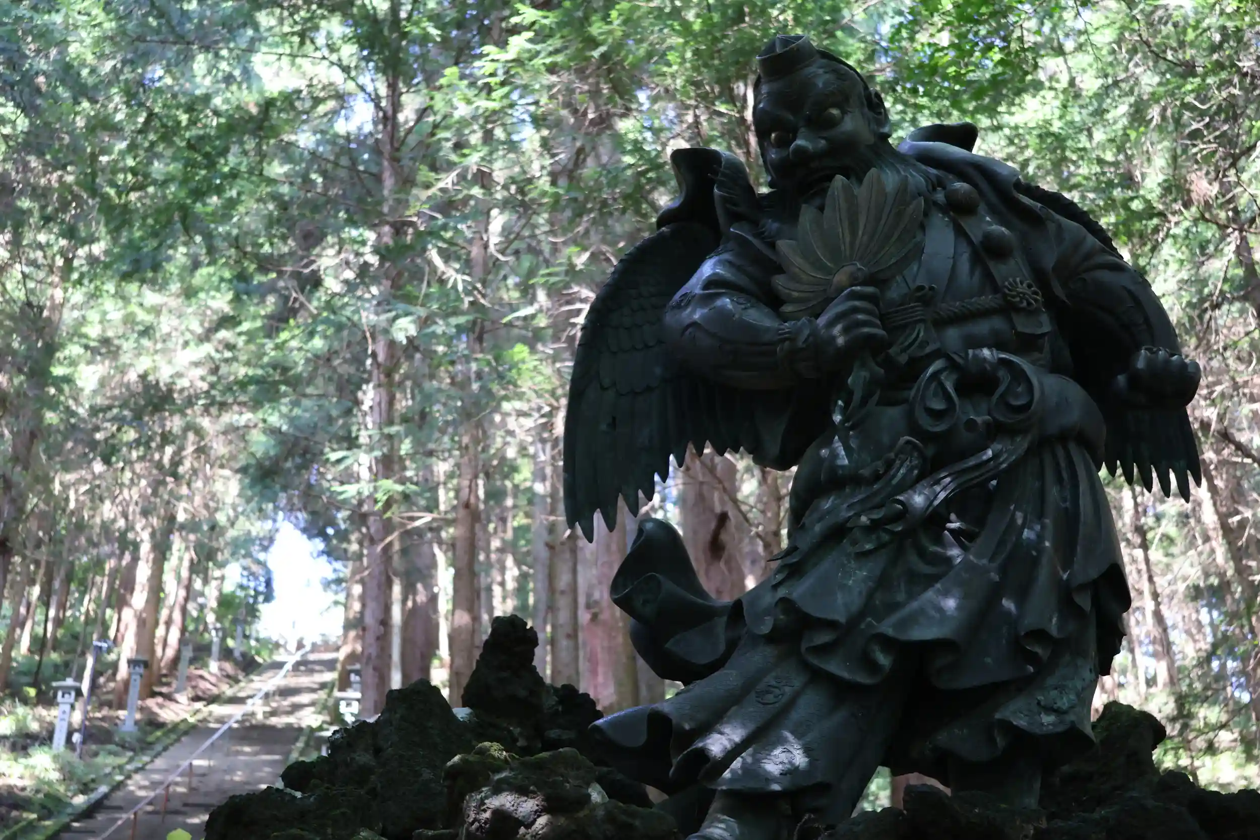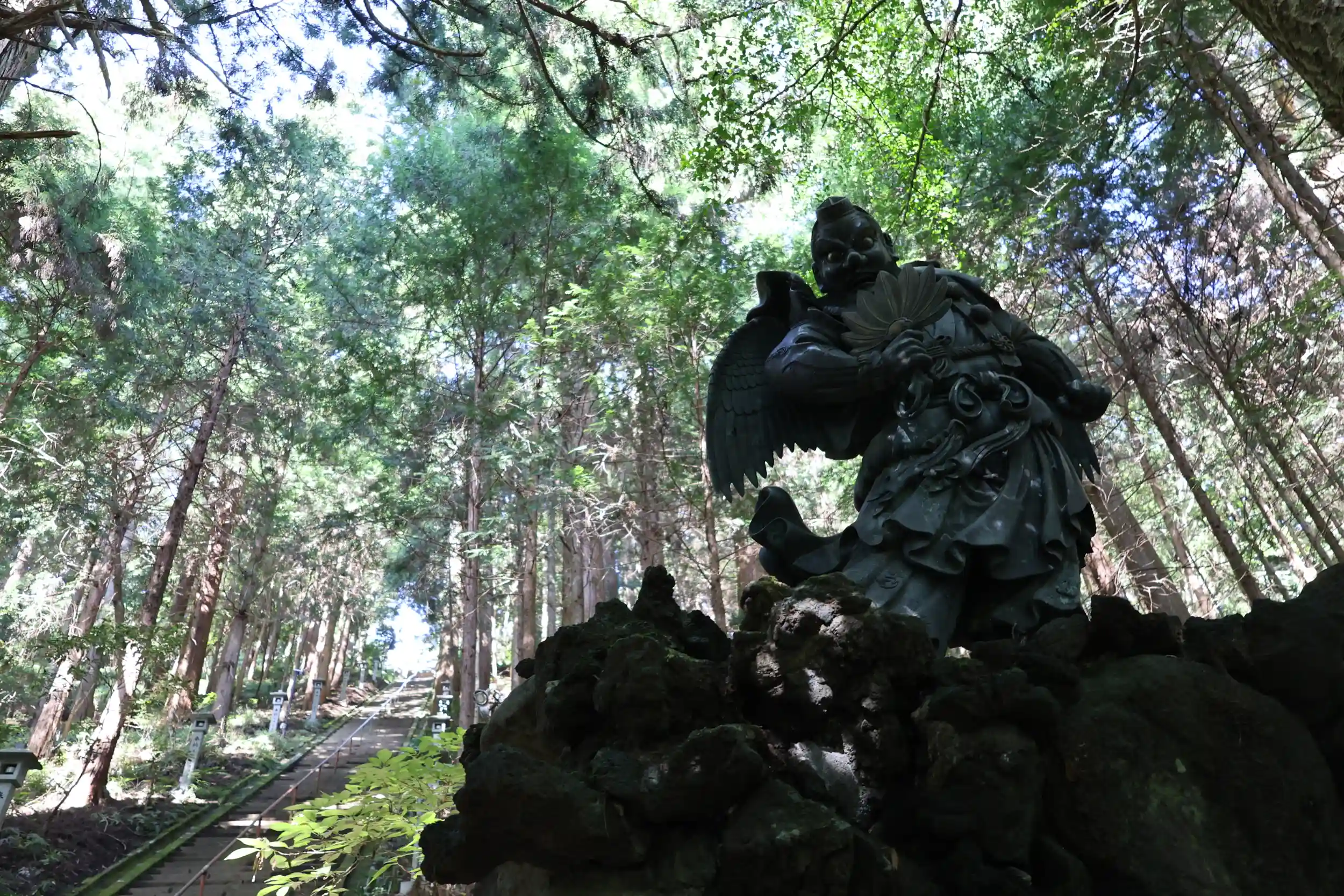 静かな深い森の中に天狗の像があちらこちらにみられますが、本当に天狗が出てきそうな雰囲気✨特に奥之院への石段の道は👺霊気を感じました😊