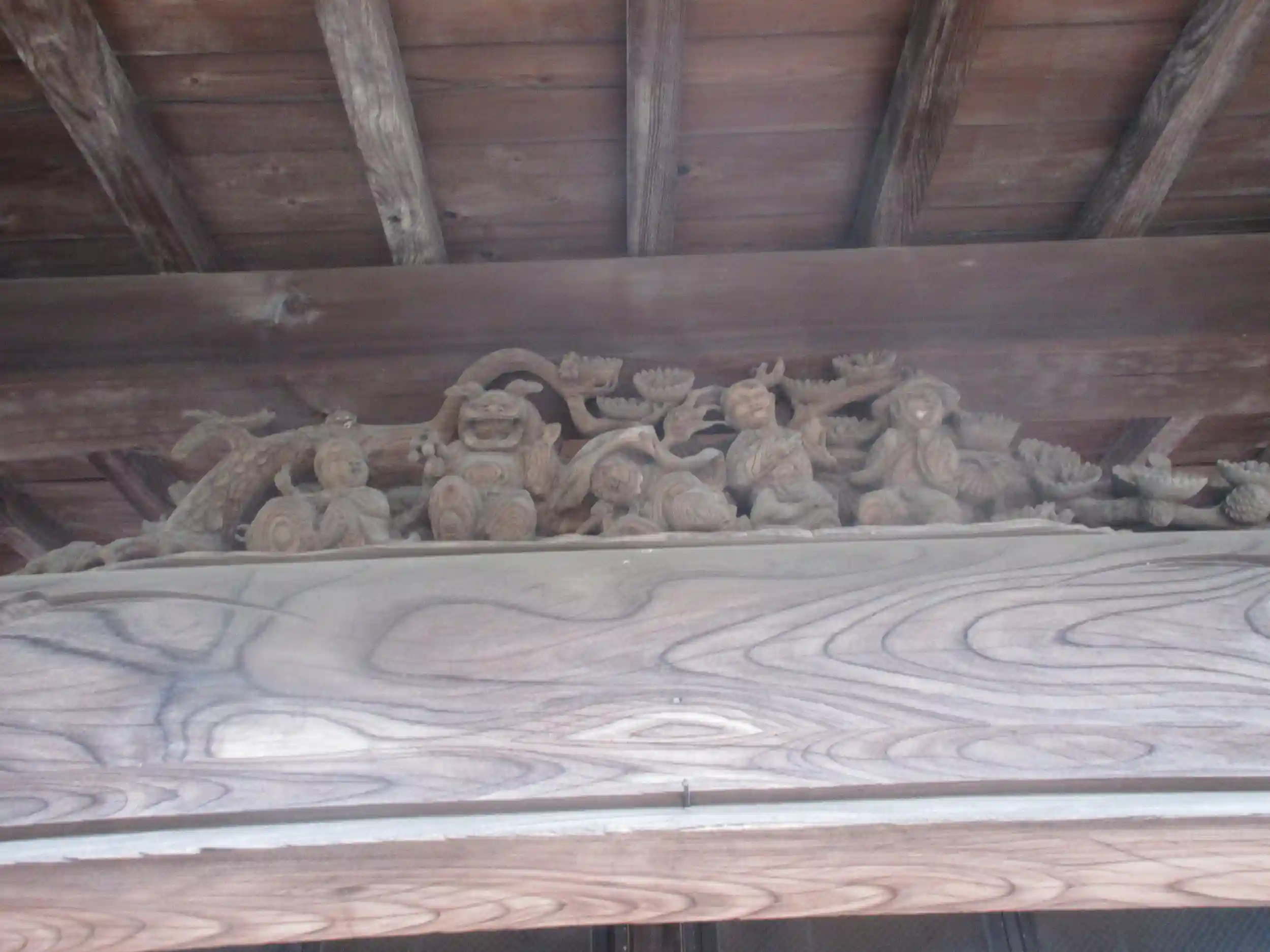 02-4) 本堂向拝中央上の彫刻
