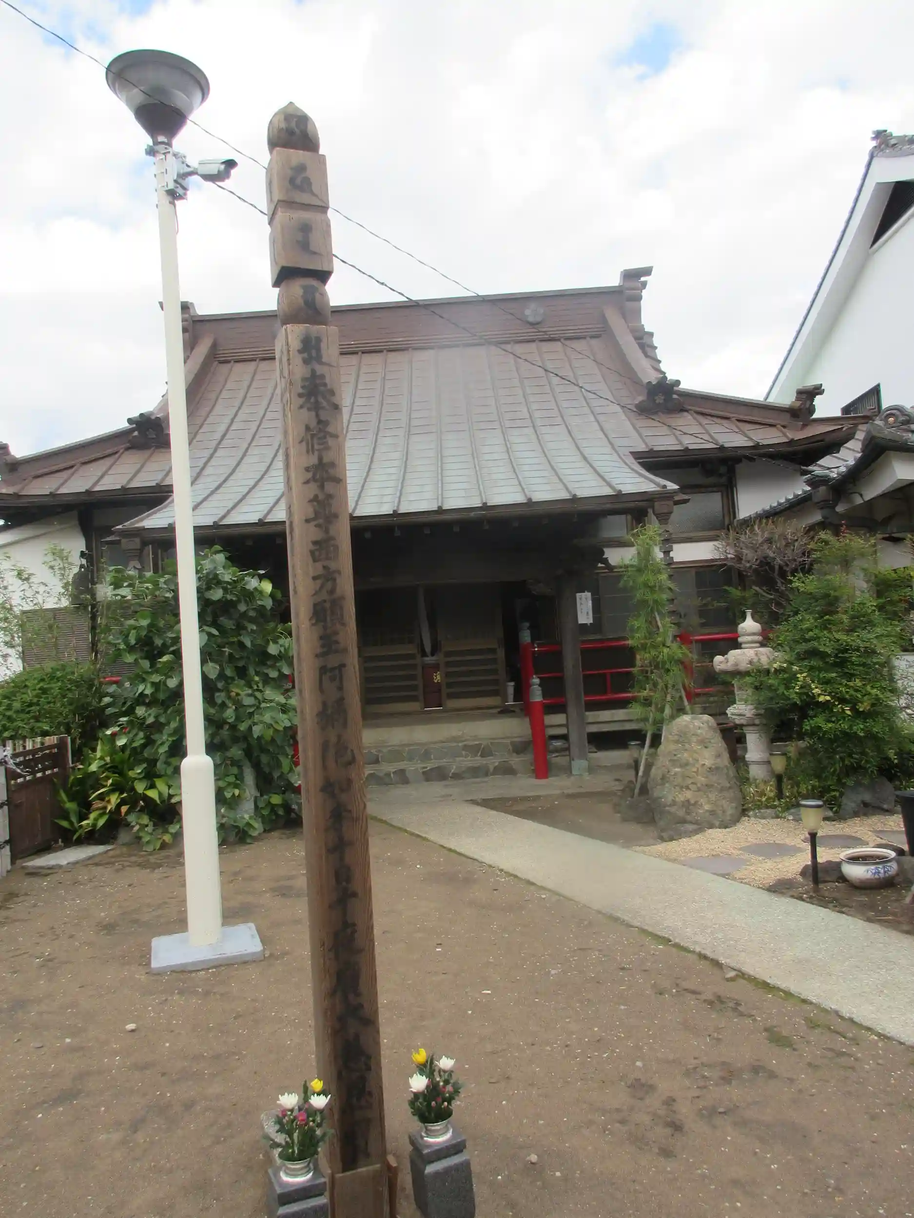 名称を失念したが、本堂安置本尊と紐状布で結ぶ柱が建っていた。