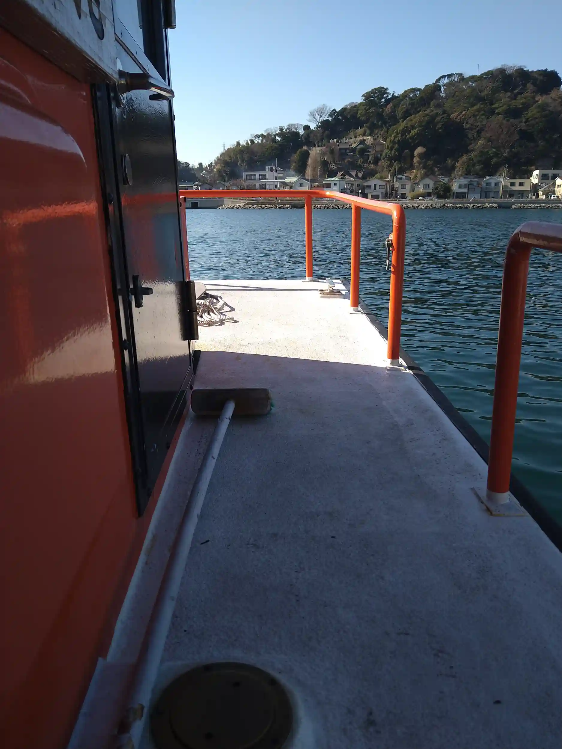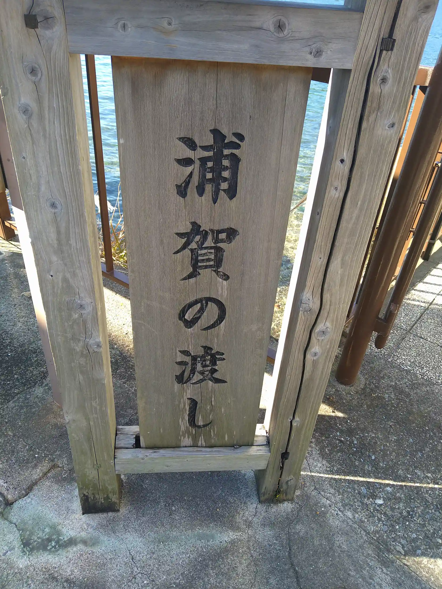 東叶神社を出て、渡し船の船着き場へと向かうと、ちょうど東から西へと船が出たところ。